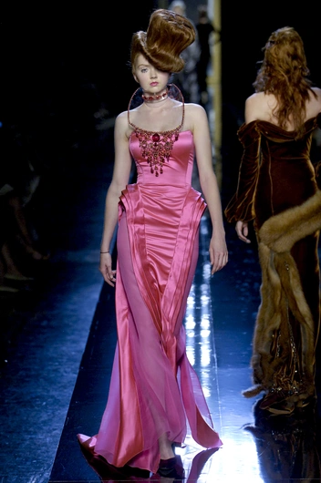 На кутюрном показе Jean Paul Gaultier осень/зима 2006-2007 ярко-розовое платье представляла Лили Коул. А спустя больше десяти лет тот же самый наряд примерила ее коллега по цеху Белла Хадид. Образ выглядел потрясающе на обеих моделях — правда, Белла решила отказаться от эффектных аксессуаров в пользу лаконичных украшений (и сделала правильно).