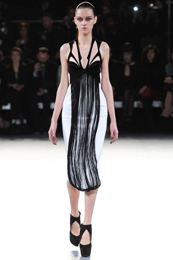 К пышным формам знаменитости не так легко подобрать подиумный образ, однако иногда мэтч все же случается. К Mugler Ким Кардашьян питает особую любовь и последнее время нередко появляется на публике в нарядах от любимого дизайнера. Начало дружбы между музой и брендом началось давно: например, в 2012 году она примерила платье из осенне-зимней коллекции, которое на Ким выглядело так же удачно. Единственное, что не пришлось по душе знаменитости — длинный декор на лифе, который на деле добавлял изюминку образу.