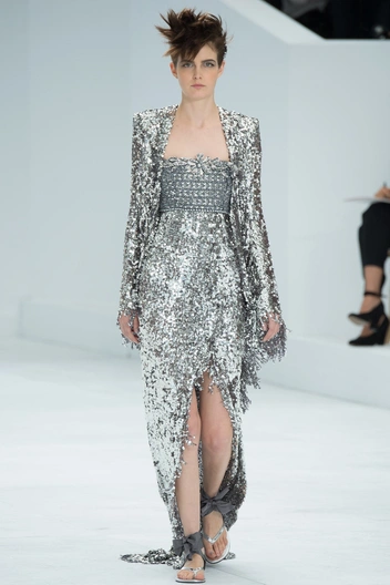Сейчас Дакота Джонсон преданна бренду Gucci, однако периодически позволяет себе экспериментировать с различными брендами, которые созвучны ее стилю. В 2015 году, например, она появилась на ковровой дорожке «Золотого глобуса» Chanel Haute Couture из осенне-зимней коллекции 2014 года. На Дакоте образ выглядит намного более гармонично — во-первых, звезда предпочла не дополнять образ сверкающим жакетом и предпочла классические локоны вместо эксцентричной укладки на показе.