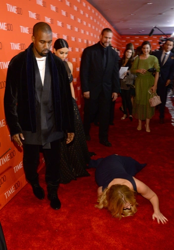 Комика и актрису Эми Шумер невозможно чем-либо смутить или ввести в неловкое положение. Даже неуклюжее падение на церемонии Time 100 в 2015 году прямо перед Ким Кардашьян и Канье Уэстом сыграло ей на руку. Звездная пара с невозмутимым видом прошла мимо, а Эми осталась лежать, смотря вслед своим коллегам по шоу-бизнесу. Шумер объяснила, что к этой шутке привела ревность: «Ты чувствуешь себя простой девушкой на вечеринке, когда перед тобой появляется еще более горячая девушка.