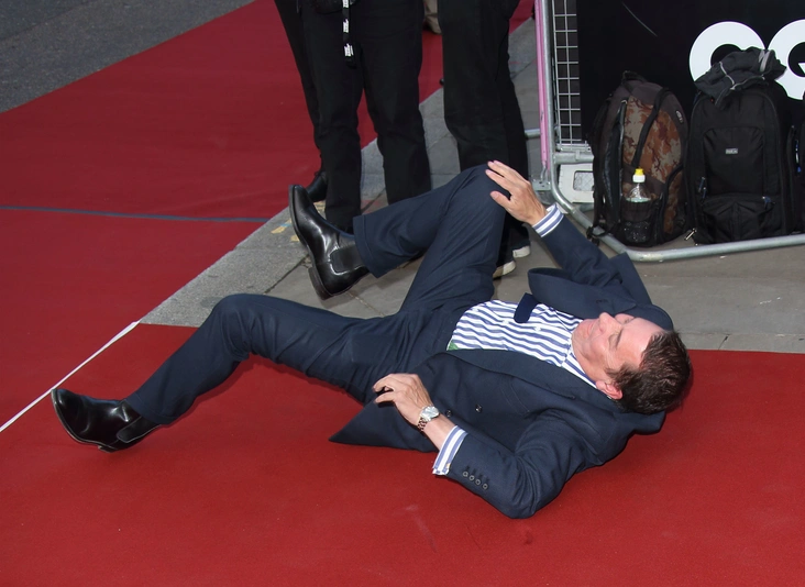 Звездные падения происходят не только по вине высоких шпилек и непрактичных платьев. Мужчины тоже нередко попадают в стыдные ситуации, но с тем же достоинством выходят из неловкого положения. Например, пианист, композитор и телеведущий Джулс Холланд. Публика привыкла видеть, как британец музицирует или берет интервью у артистов, поэтому тем неожиданнее было видеть его в положении лежа на церемонии вручения награды GQ Men of the Year 2014. Причина падения — шов красной ковровой дорожки, плохо приклеенной к полу.