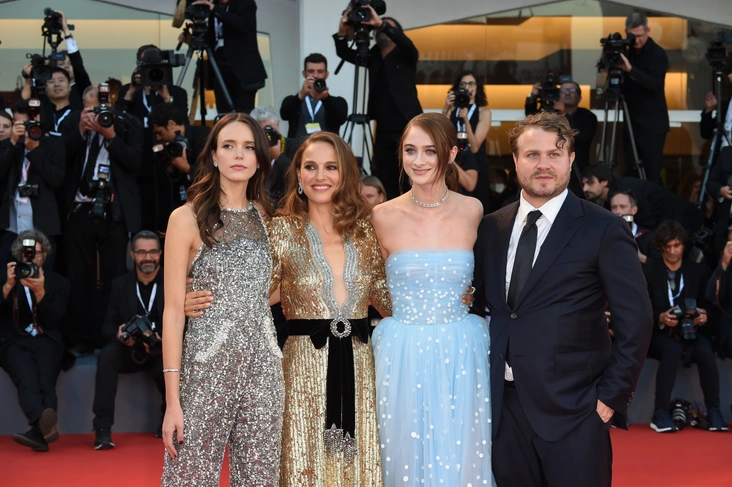 На красной дорожке Венецианского кинофестиваля в 2018 году блистали сразу несколько звезд ленты Vox Lux. Все было хорошо, пока у 16-летней актрисы Рэффи Кэссиди не начались сложности с ее пышным платьем небесно-голубого оттенка (которое, конечно, собрало немало восторженных отзывов). На помощь бросились все: Натали Портман, Стейси Мартин и режиссер фильма Брэди Корбет. К счастью, травм удалось избежать.
