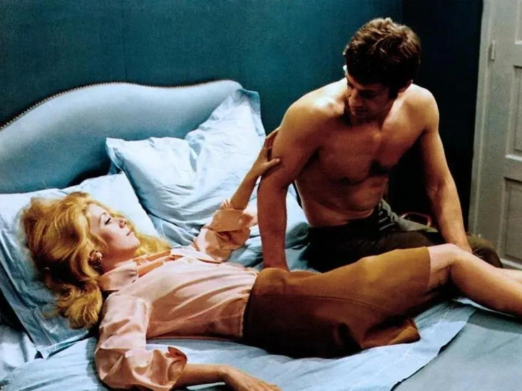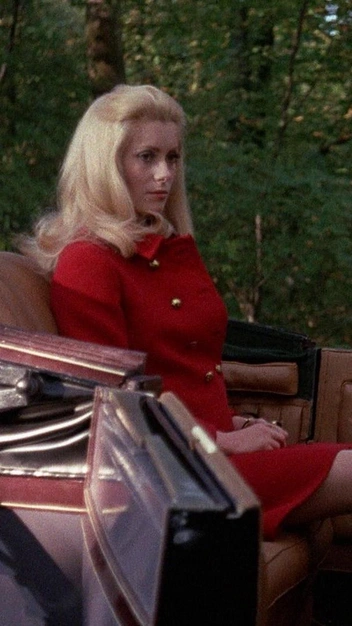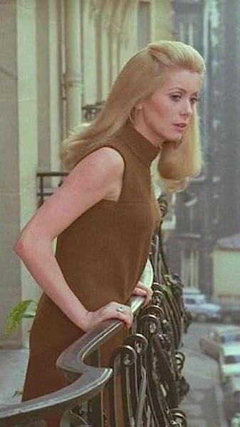 Стоит сказать, что Катрин стала настоящей музой Ив Сен-Лорана. Через год после ее визита к Елизавете II, в 1966 году дизайнер создает целую коллекцию костюмов для одного из самых нашумевших фильмов в карьере Денев — «Дневная красавица». В центре сюжета примерная буржуазная домохозяйка, которая решается на двойную жизнь и совмещает работу в публичном доме и роль примерной жены.