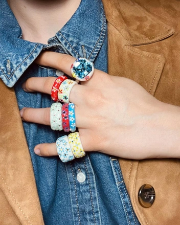 У наивных украшений есть особенная магия — они становятся тем необходимым акцентом в простых образах с джинсами, рубашкой и свитером. А с костюмами и другими строгими вещами «несерьезные» кольца и подвески в хорошем смысле приземляют. Рассказываем, у каких локальных брендов искать такие украшения — от цветных печаток, как в детстве, до настоящего ювелирного искусства с бриллиантами.