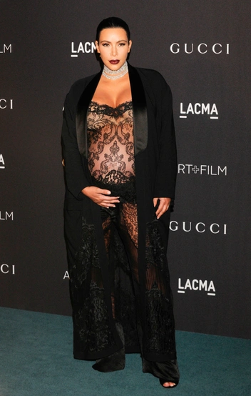 Ким стремилась на вершину модного Олимпа много лет. Помогали ей в этом резонансные выходы и смелые, а порой и вовсе скандальные аутфиты. Даже во время своей беременности в 2015 году Кардашьян позволяла себе откровенные наряды, вроде «голого» платья на показе Givenchy из черного кружева, которое селебрити подкрепила ботфортами. В подобном образе, тоже авторства французского Дома моды, Ким также появилась на LACMA Art+Film Gala. Но на этом мероприятии девушка добавила к образу черный жакет.