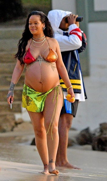 Разумеется, никто не готов переплюнуть Рианну, ведь у других знаменитостей насчитывается 1-2 скандальных лука, а вот Рири эпатировала публику каждый день. Все началось с анонса беременности, когда барбадосская певица появилась на улицах Нью-Йорка с оголенным животом. С тех пор селебрити и не стремилась его закрыть, гордо демонстрируя миру, что она скоро станет мамой. Надо признаться, к концу беременности звезды многим живот Рианны уже надоел, но певица не останавливалась ни в образах на каждый день, ни во время выхода на красную дорожку. Днем селебрити носила кроп-топы и бра, а на светских мероприятиях выходила в полупрозрачных платьях и нижнем белье (читайте также: Голый живот, декольте и стразы: самые скандальные образы беременной Рианны).