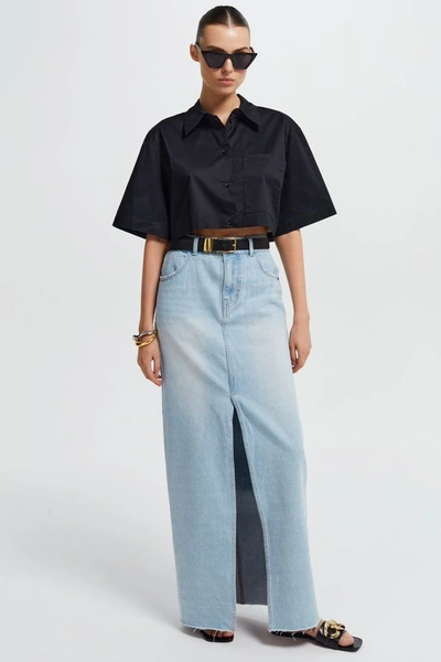 Чем проще юбка, тем лучше. Именно такое правило взяли за основу дизайнеры в новом сезоне. Различный декор, а также игра с формами и асимметрией противопоказаны дениму и вашему гардеробу. Стоит обходить стороной юбки с неровным подолом, асимметричным кроем, складками и рюшами. На замену такой модели подойдут стильные и лаконичные юбки длины миди из светлого денима, которые можно сочетать с футболками, блузами и трикотажем (читайте также: И зимой и летом: какие юбки можно носить круглый год (и где их искать)).