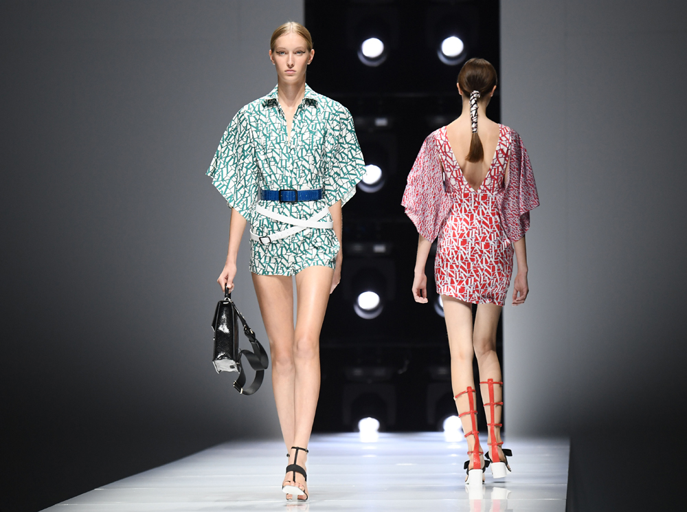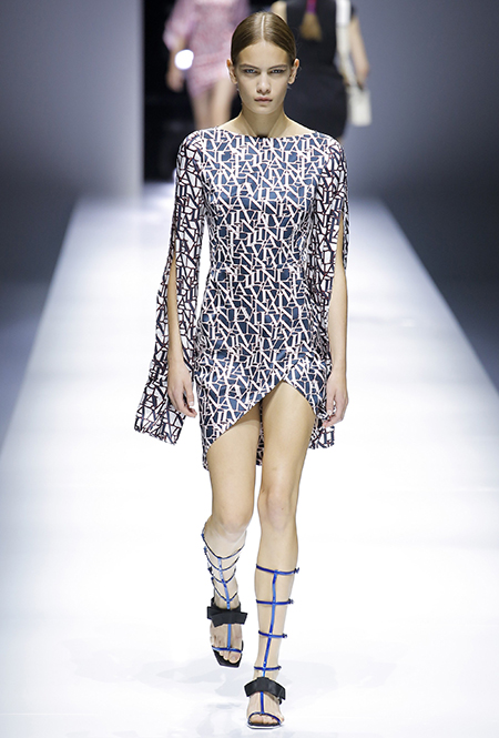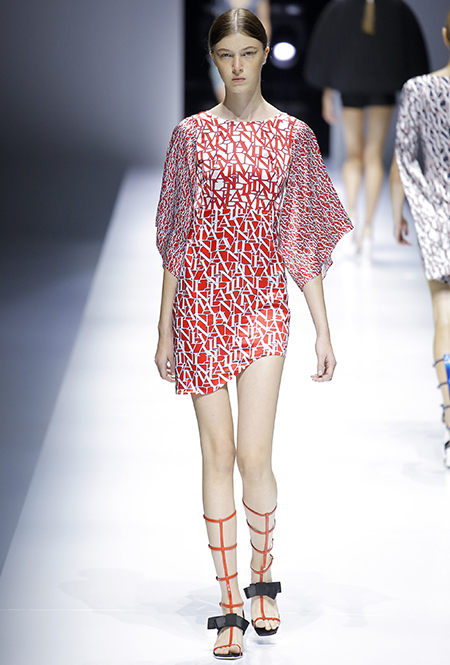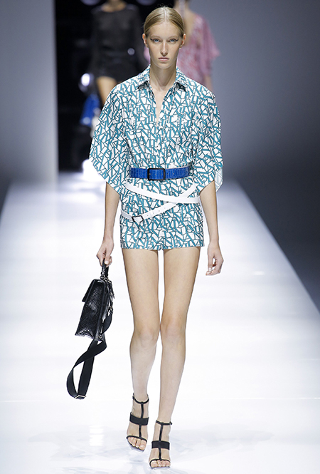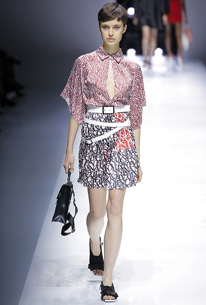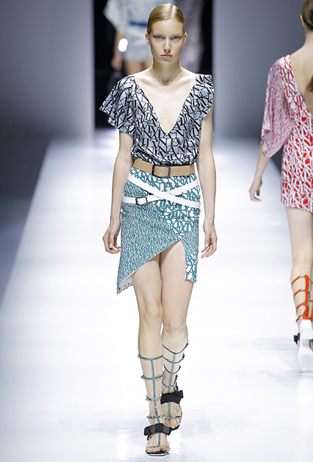 В коллекции есть и цвет, но без излишеств – только заведомо коммерчески успешные голубой, гераниевый, светло-розовый. Идее практичности и коммерческого успеха подчинены и принты – у Лапидуса это крупные цветные буквы, из которых складывается название Lanvin. Ими усыпаны блузы с оборками, юбки и платья с ассиметричным подолом и – возможно, главная статья дохода бренда в следующем сезоне – тонкие шейные платки.