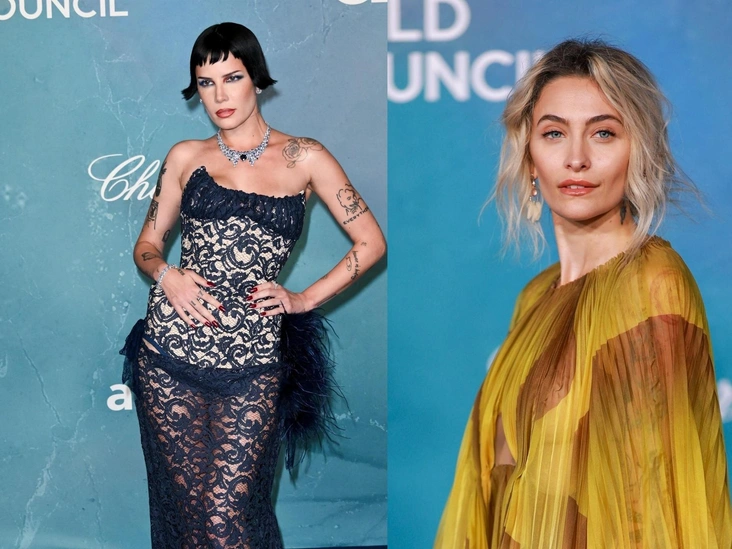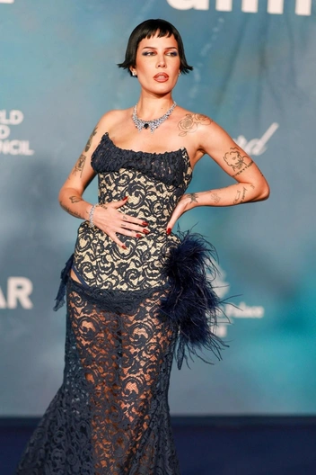 Не остались в стороне от стильных выходов и певицы. Холзи решила поэкспериментировать с дарк-эстетикой: на ней было кружевное платье Erik Charlotte темно-синего цвета с перьями и массивные бриллиантовые украшения Damiani. Ава Макс сделала ставку на драматичный красный — атласное платье без бретелек с корсетом и объемной юбкой, она дополнила парой Christian Louboutin на внушительной платформе и сверкающим ожерельем. Софи Карсон же показала нежный, немного сказочный образ. Она надела пудровое платье Elie Saab Couture с вышивкой из кристаллов, аппликацией в виде цветов и рукавами-буфами.