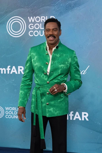 Следом на красную дорожку вышел Колман Доминго. Своим аутфитом он едва ли не смог затмить всех мужчин фестиваля. Актер выбрал кастомный костюм Valentino с ярко-зеленым шелковым пиджаком, украшенным воротником-стойкой, золотыми пуговицами и флоральными узорами, а также с черными брюками, слегка расклешенными книзу.