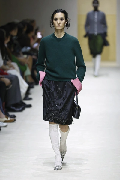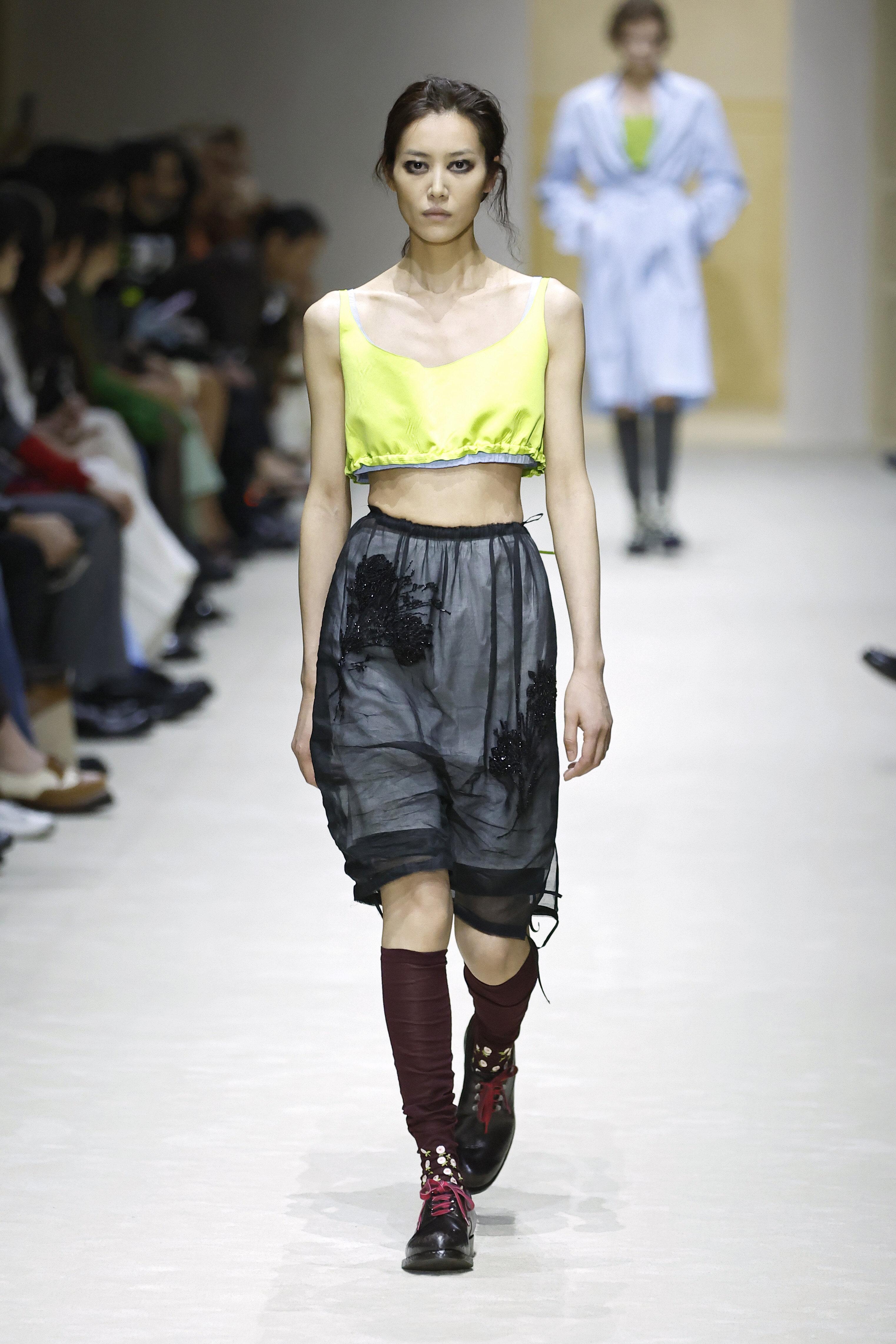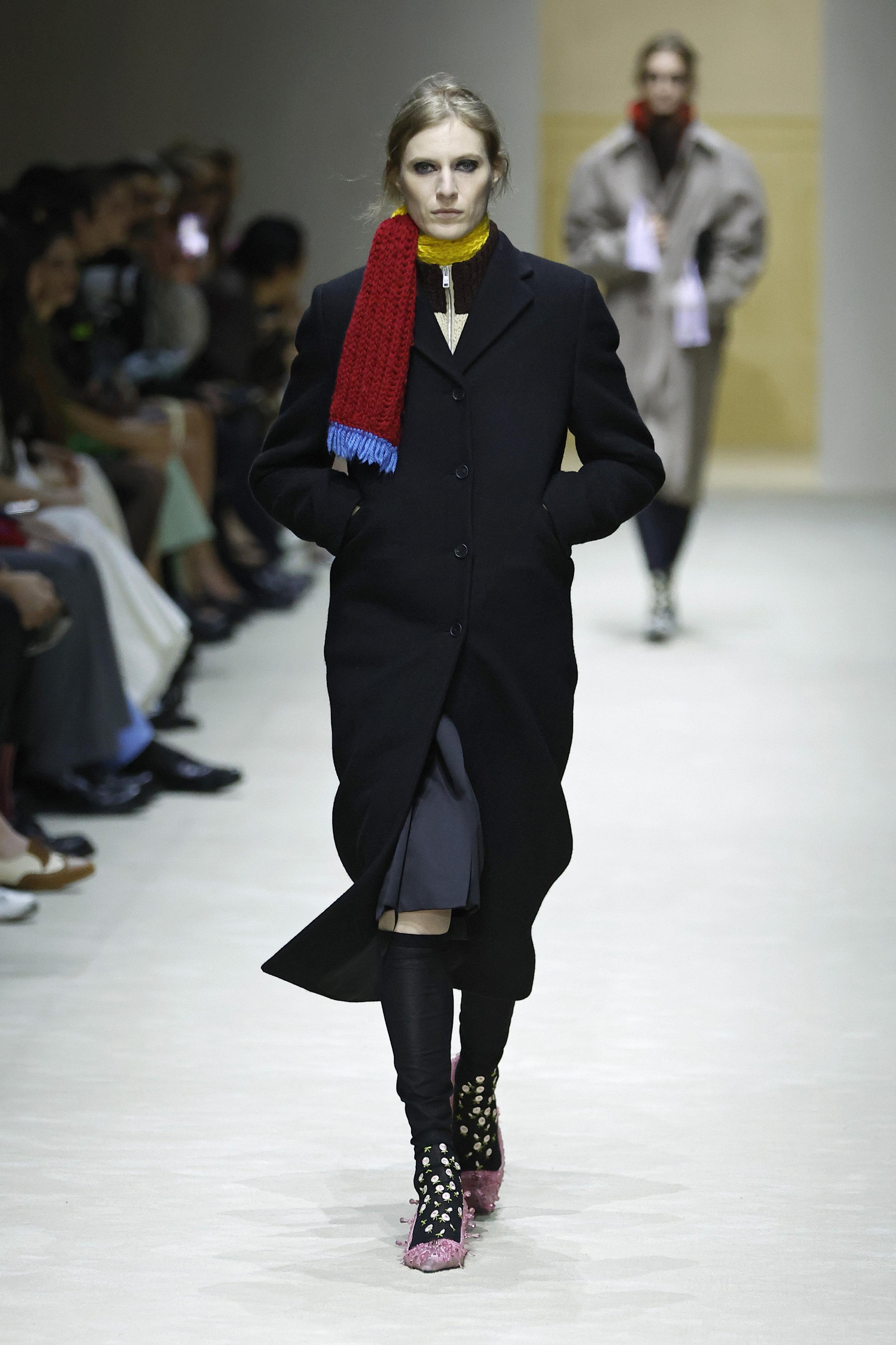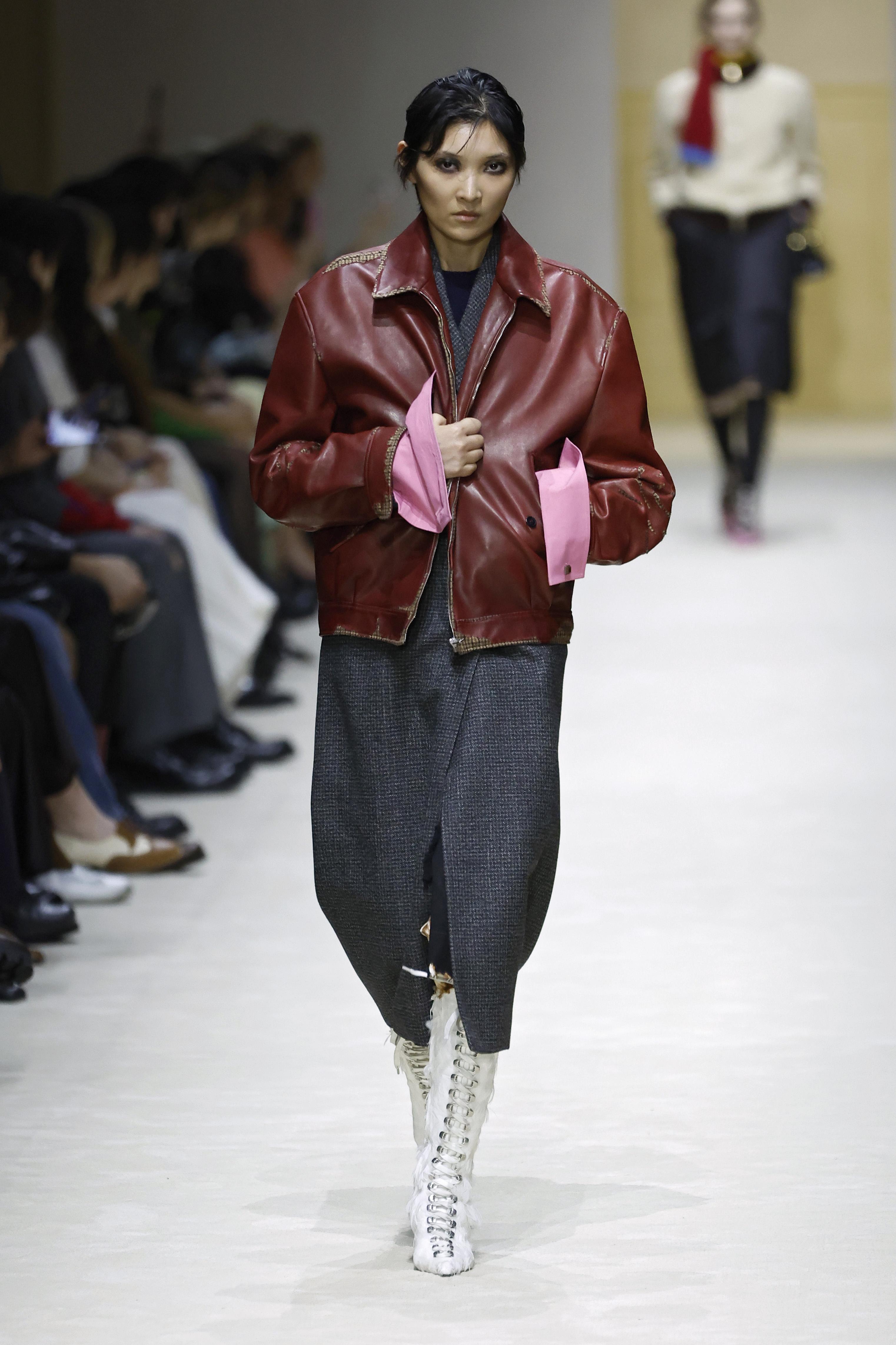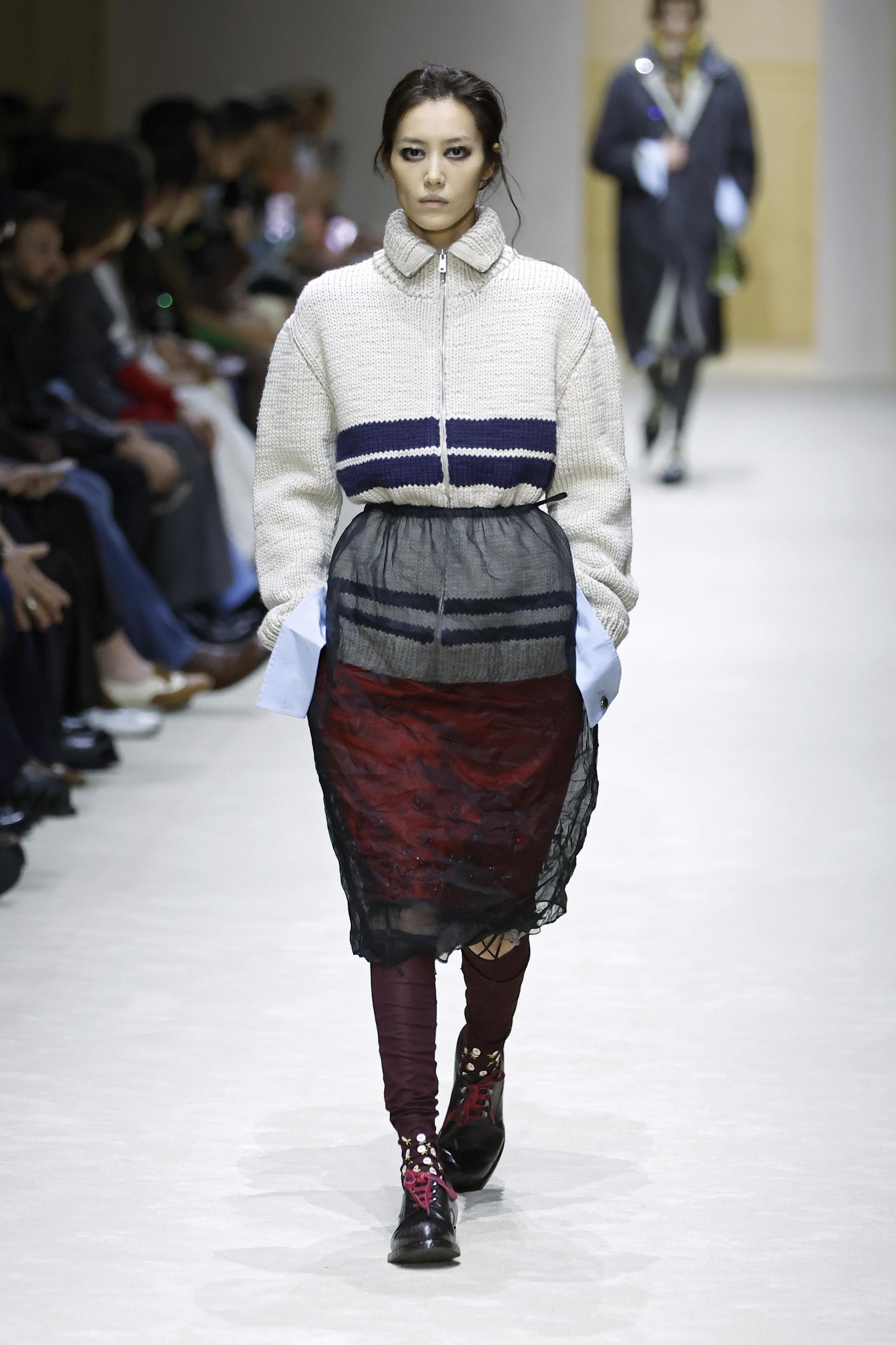 Первым делом в глаза бросаются «повидавшие виды» вещи: затертые куртки и плащи, мятые рубашки и юбки из органзы, проглядывающая из прорех разноцветная ткань. Последний прием, к слову, вдохновлен искусством. В живописи наслоенная друг на друга краска зовется pentimento — это знак того, что художник передумал в процессе работы и решил переписать часть картины. И Prada водружает поверх еще один уровень «несовершенности». Теперь из подиумных вещей нарочито торчат нитки, края тканей остаются необработанными, а дыры становятся полноценным декором.
