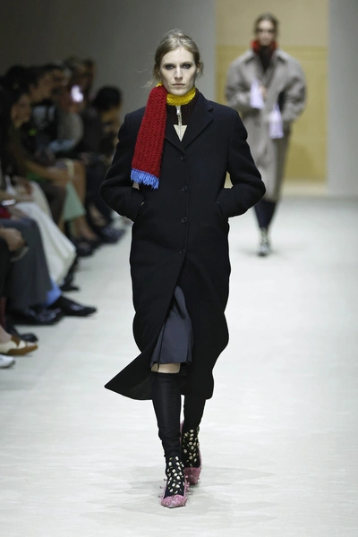 Вообще, шоу по традиции работает со всеми излюбленными темами Миуччи. Оно уже привычно объединяет и вечерние выходы в свет, и рабочие будни. Местами проскальзывают намеки на униформу — кажется, главный фаворит Prada за последние годы — но вскоре они разбиваются о помпезные вышивки бисером.