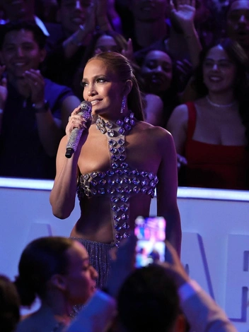 С самого начала вечера Лопес дала понять, что это не просто музыкальная премия, а настоящий модный спектакль. Всего за шоу она поменяла семь нарядов, каждый из которых стал событием сам по себе. Часто ведущие премий не успевают даже поговорить с гостями, но это не про Дженнифер. Певица прошлась по красной дорожке, провела церемонию и выступила на сцене, исполнив 26 песен за 6 минут (читайте также: Почему Анджелина Джоли — снова икона стиля, или что такое luxe purism).