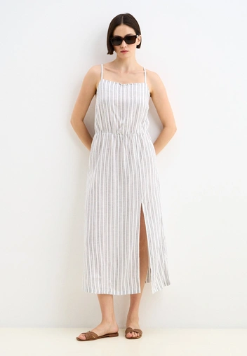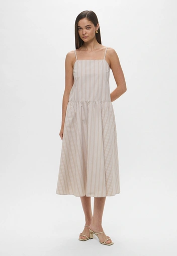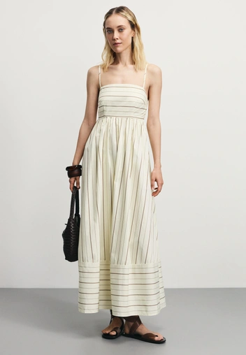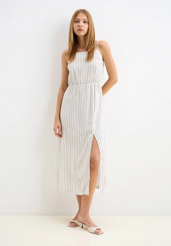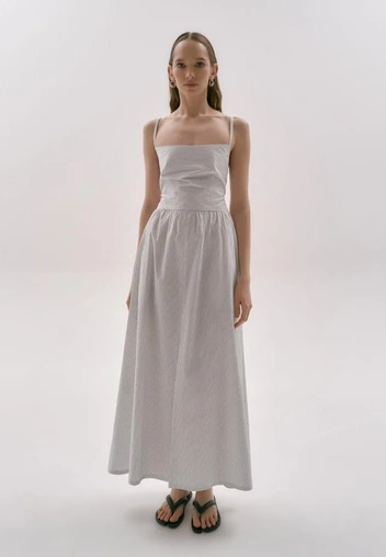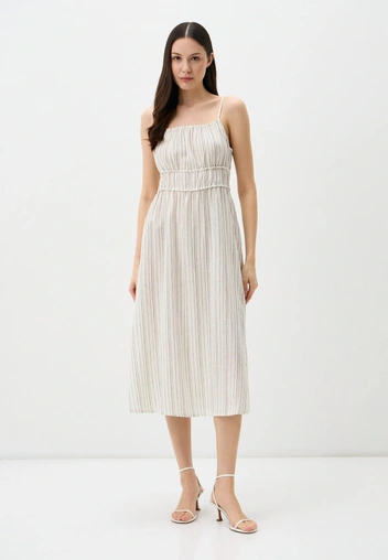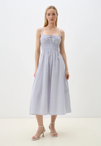 Это был легкий летний сарафан из смесового шелка, который Свифт приобрела примерно за 398 долларов. Наряд кремового оттенка имеет тонкие темные полоски. Сверху он украшен мягкой эластичной драпировкой и тонкими бретелями, а снизу — длинной пышной юбкой (читайте также: Говорит платье: 10 раз, когда королевские особы делали заявления с помощью своих образов).