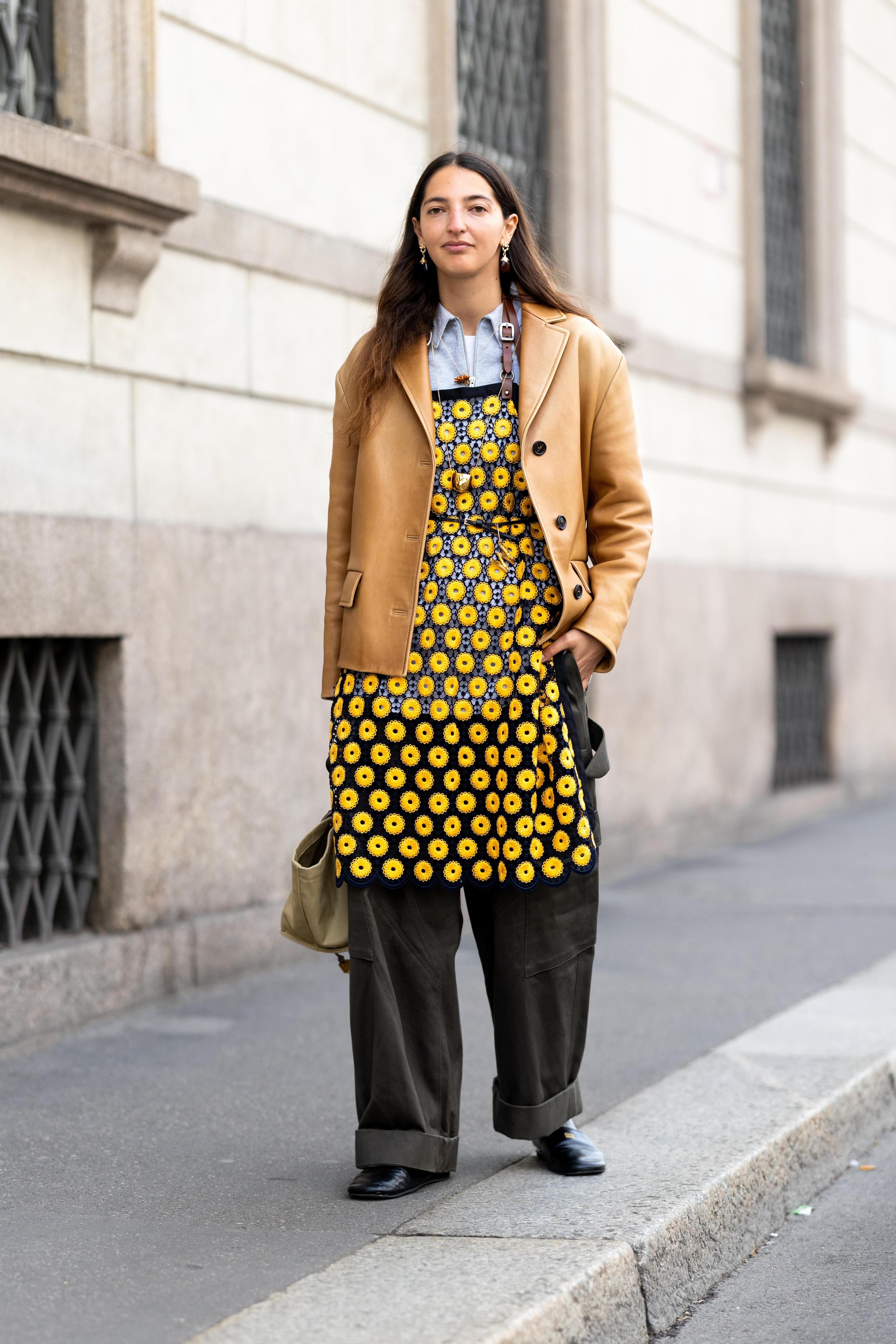 Такой принт не спорит с пропорциями и не сразу бросается в глаза, зато делает платье более универсальным — его можно стилизовать и с соломенной корзинкой как Джейн Биркин, и с кожаной сумкой структурной формы как Хлоя Севиньи.