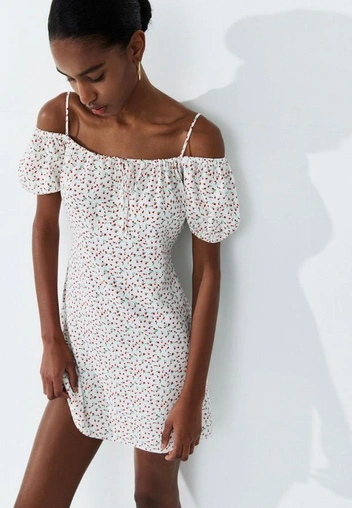 Отдельный момент — детали. Интересно работают пышные рукава, собранные на резинку манжеты, аккуратные рюши по линии лифа, вырезы на спине или талии. Они не обязаны быть супердекоративными, важнее, чтобы в них считывалось настроение — немного винтажное, но при этом очень свободное и легкое. Объемные цветы, которые еще пару сезонов казались чем‑то из мира красных дорожек, теперь встречаются и в дневных платьях, добавляя изюминки привычному принту.