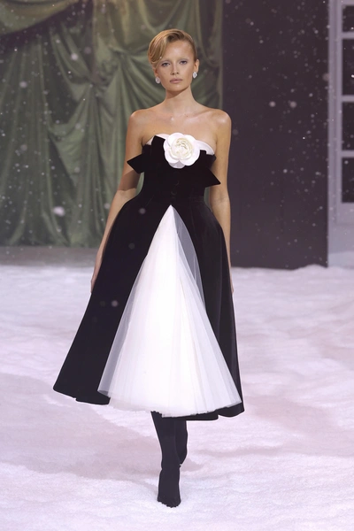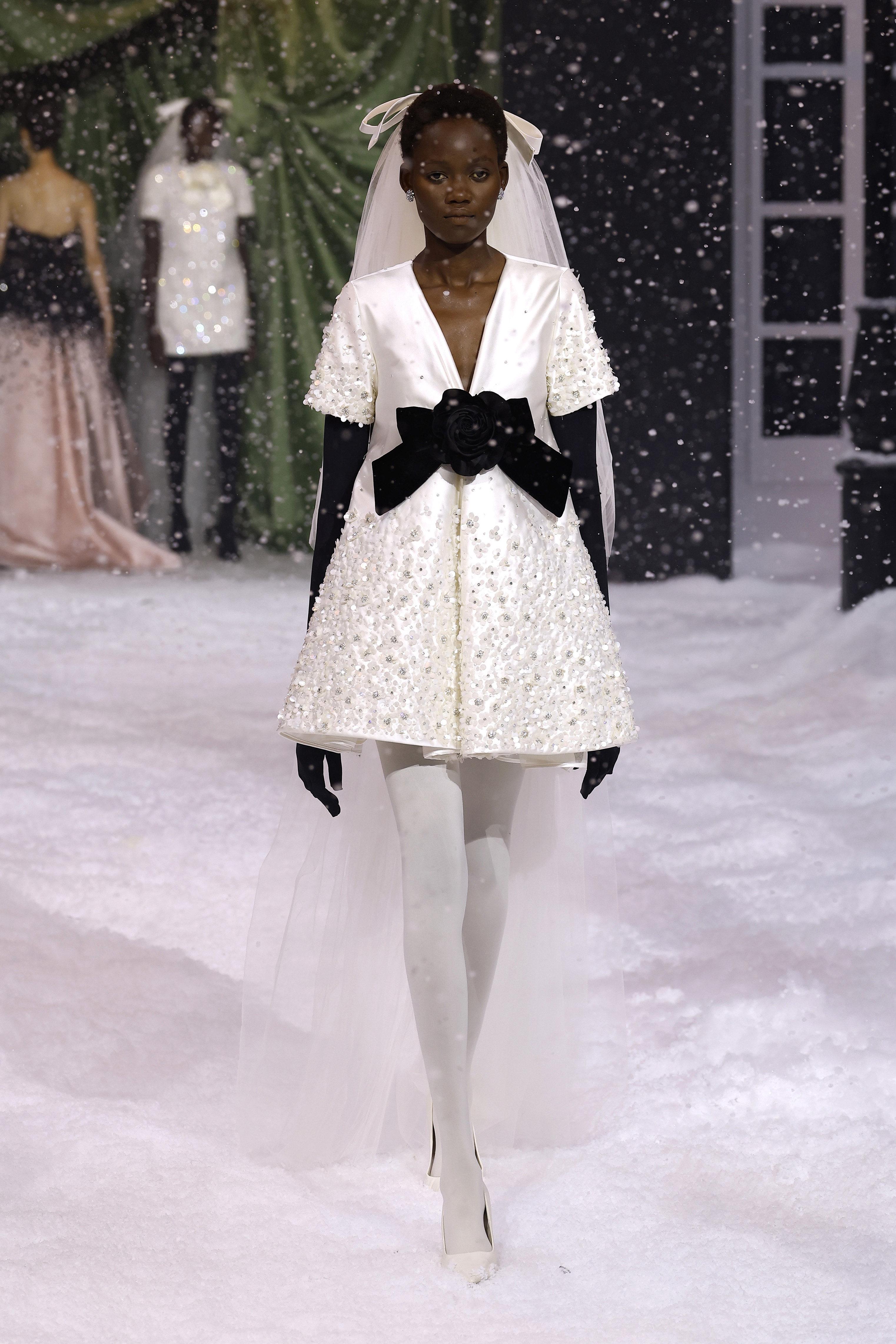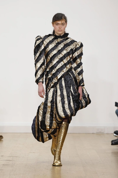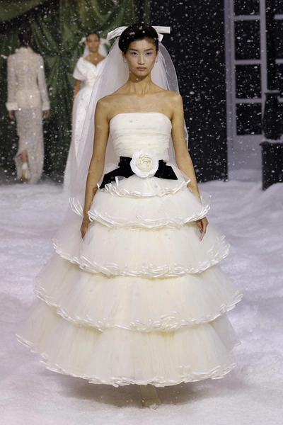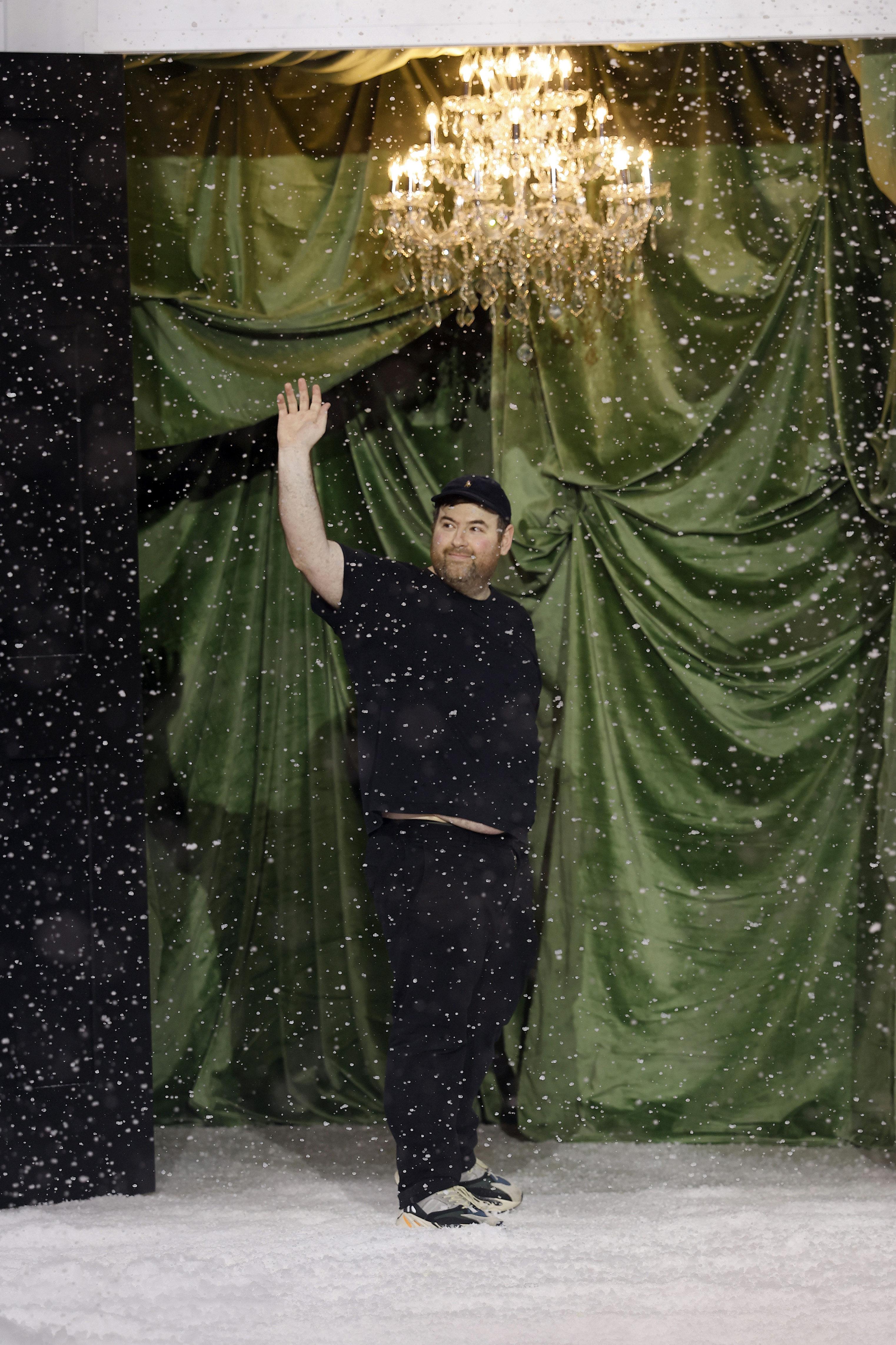 Самый холодный месяц года февраль не показал всю свою мощь в Лондоне, поэтому дизайнер Ричард Куинн сделал работу за него. На показе в рамках Недели моды неожиданно пошел снегопад, украшающий платья моделей и создающий ощущение сказки. В коллекции — как всегда женственные платья фасонов, какие были у Dior и Balenciaga с объемной юбкой и закрытым декольте. Нашли сходство со свадебными платьями? Вам не показалось, Ричард Куинн строит несколько коллекций подряд на свадебной тематике, так как его основные покупательницы — невесты из восточных стран.