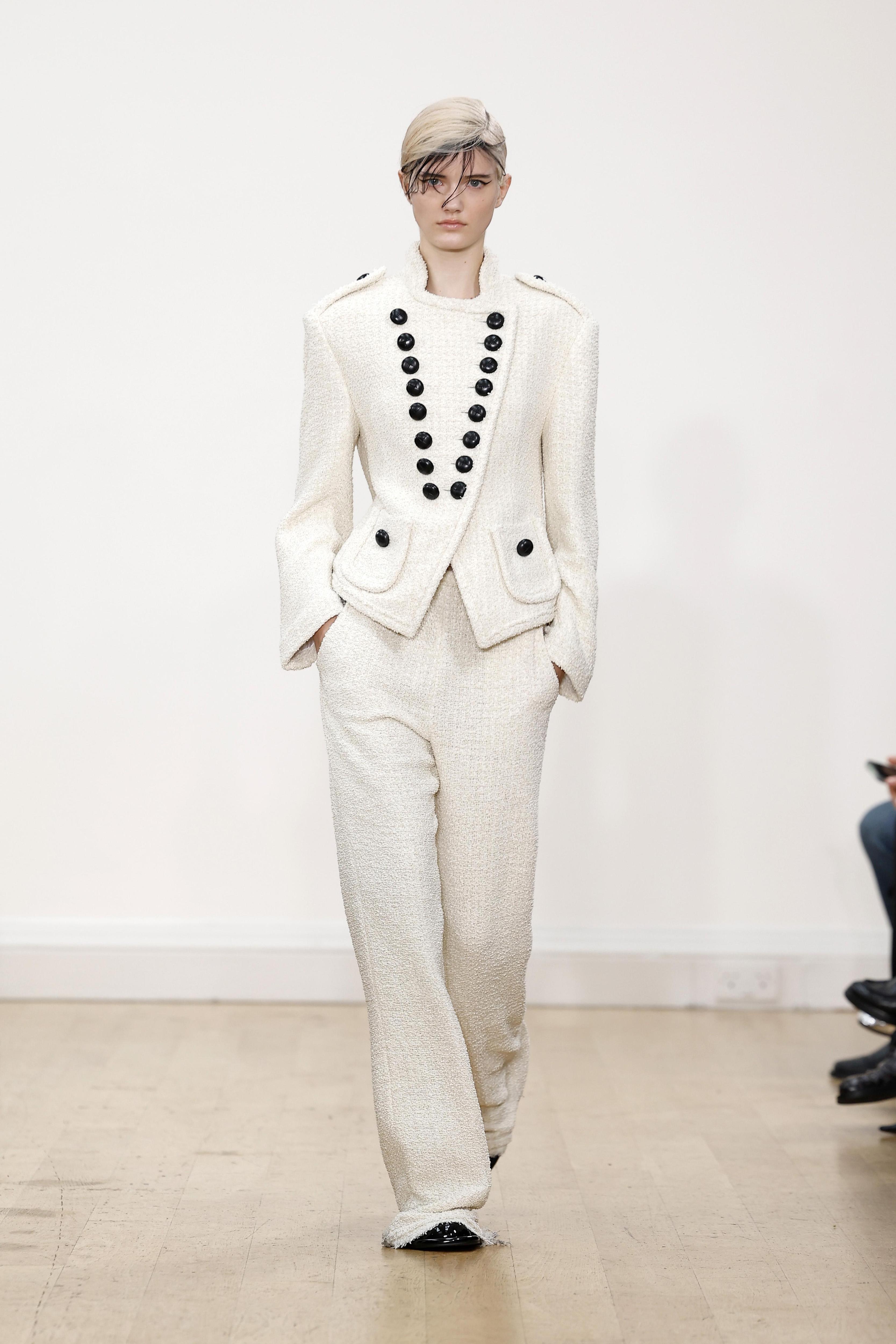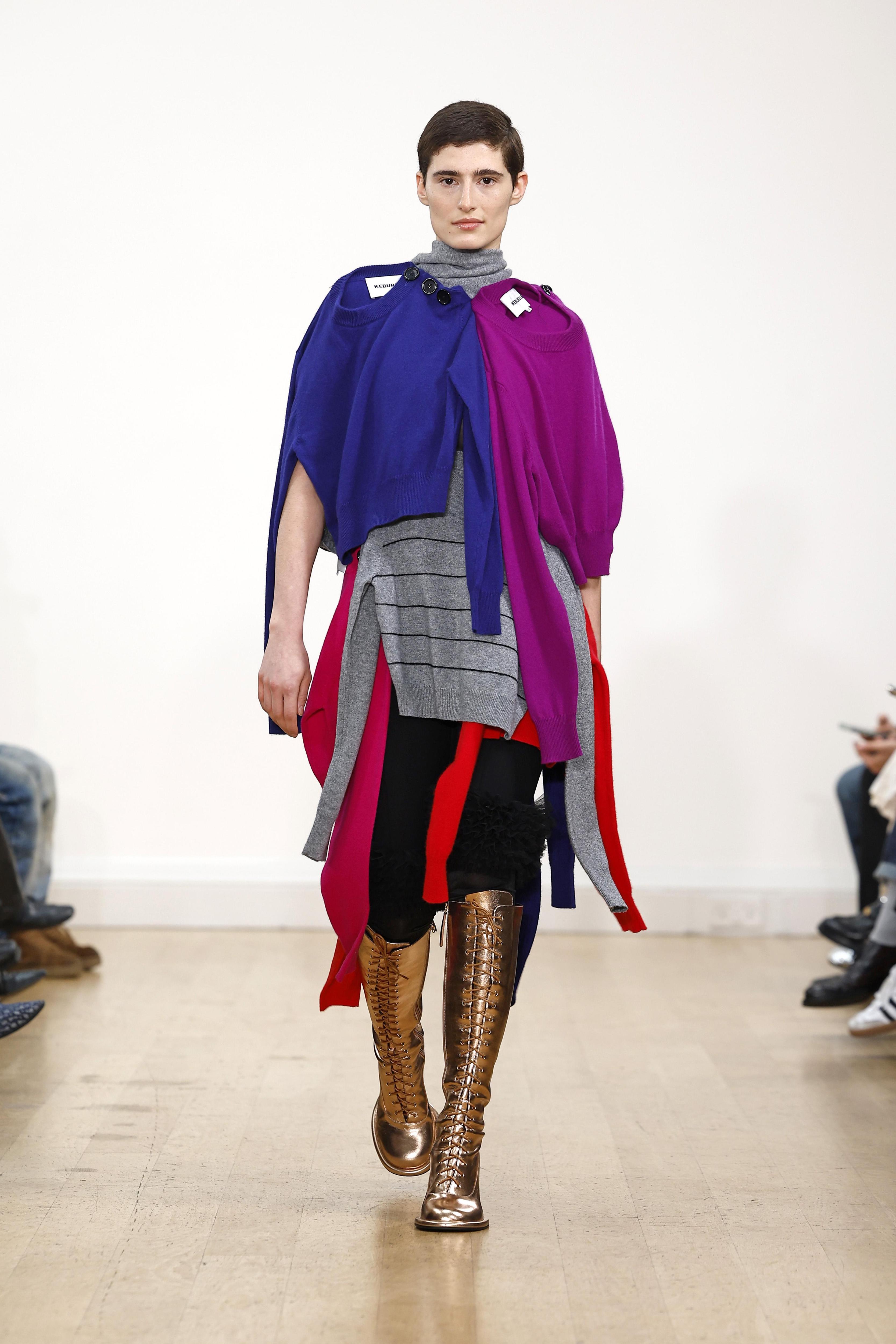 На прошедшей кутюрной Неделе моды отметили бренд Inclover из Казахстана, который дебютировал в Париже, а теперь на подиум вышел грузинский Дом Keburia. Видим сразу несколько трендов: для начала, полоска из предыдущего абзаца, а еще шнуровка вместо молнии на обуви, которую видели и у Stella McCartney, и у Dior. Но главное — схожесть образов с национальным грузинским костюмом с его крупными пуковицами, мехом, приталенным силуэтом, вышивкой и накидками с кистями.