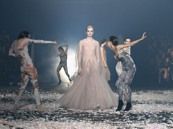За идею взялись и другие бренды, для которых в новом сезоне танец стал одной из отправных точек для коллекций. Например Вирджил Абло для Off-White представил трико из спандекса с асимметричной пачкой, а на показе Stella McCartney модели ходили в чешках, напоминающих вольную интерпретацию повседневной танцевальной обуви балерин.