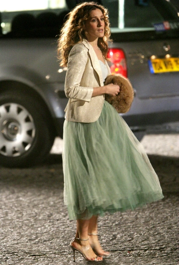 Еще на рубеже веков пачка прочно обосновалась в гардеробах модниц, попав туда прямо с экранов телевизоров. Юбка из фатина была визитной карточкой Кэрри Брэдшоу, героини сериала «Секс в большом городе». Во многом именно благодаря стильной колумнистке женщины не только задумались о том, что эклектика — это интересно и даже вполне возможно воплотить в жизнь, но и примерили на себя пышную юбку из фатина. Сама актриса в детстве занималась балетом, поэтому в таком образе точно чувствовала себя комфортно.