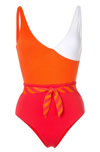 Любителям цветного монохрома на пляже тоже есть, чем поживиться. Где еще, как не на побережье, можно привлекать внимание сочной летней палитрой? Выбирайте цитрусовые оттенки, яркую фуксию, насыщенный синий в тон голубого неба или палитру неона. И хотя в повседневной одежде эта цветовая гамма свои позиции постепенно сдает, на пляже безумные цветовые сочетания из 80-х всегда будут выглядеть актуально и уместно.