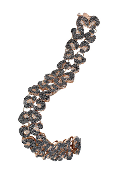 Украшения из розового золота – тренд, заметно набирающий обороты. В украшениях новой коллекции Ancient America розовое золото сочетается с черными и белыми бриллиантами, имитируя шкуру ягуара, и с коньячными – подражая перьям птиц.