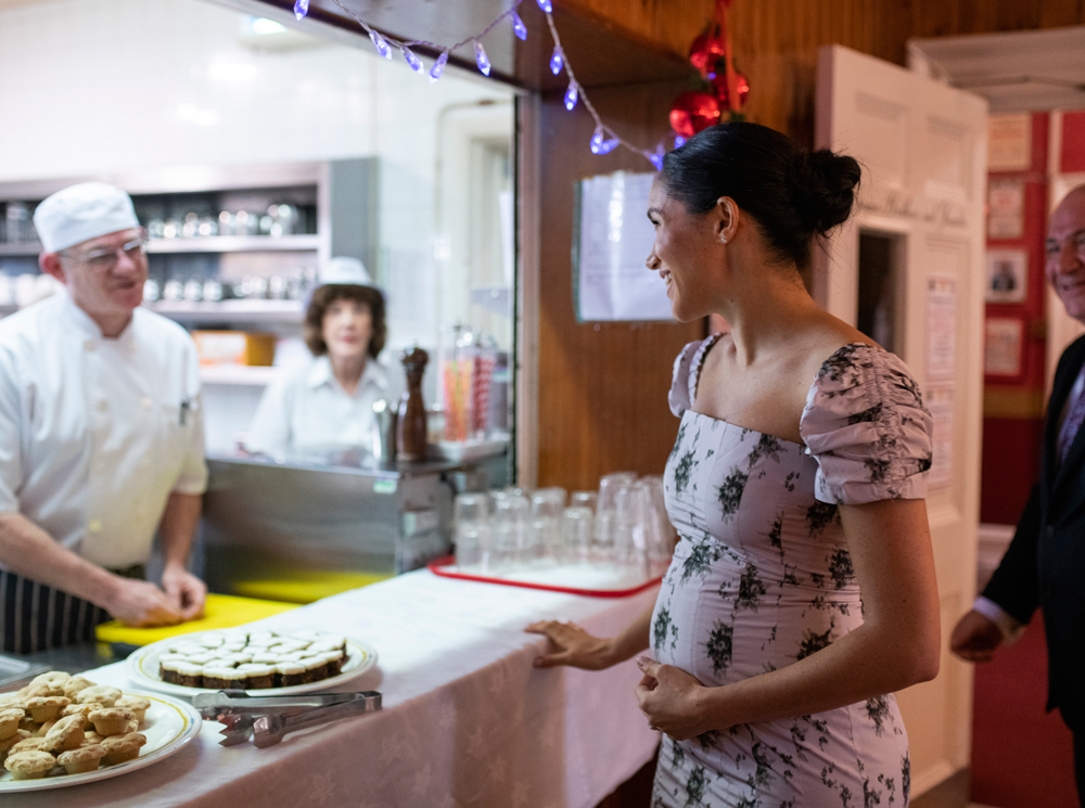 Первенец Гарри и Меган появится на свет весной, и с момента официального объявления о беременности и до сих пор Ее Высочество появляется на публике преимущественно в облегающих нарядах. В частности, во время австралийского турне в октябре герцогиня блистала в платье от австралийского дизайнера Karen Gee, идеально подогнанном по фигуре. И даже через два месяца Меган старалась придерживаться все той же стильной формулы – облегающие наряды для публичных мероприятий. Так, на прошлой неделе герцогиня поразила публику, появившись на церемонии Fashion Awards в черном бархатном платье Givenchy (читайте также: «По следам дерзкой Дианы: как Меган Маркл доказала, что «протокол» ей не писан»). Наряд настолько подчеркивал линию талии Ее Высочества, что многие обозреватели назвали это «момент Деми Мур», напоминая о резонансной фотографии беременной Мур на обложке Vanity Fair в 1991 году.