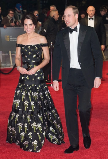 Эта осторожность в нарядах вызвана посещением престижной кинопремии самых настоящих монарших особ: герцог и герцогиня Кембриджские не могли пропустить столь важный вечер, тем более что принц Уильям — патрон BAFTA. Как только стало известно о черном дресс-коде церемонии награждения, мировые СМИ принялись делать ставки, выдержит или проигнорирует Кейт Миддлтон дресс-код. Выиграли вторые, однако сдержанное болотно-зеленое платье от Jenny Packham все равно не выбивалось из общей темной тональности.