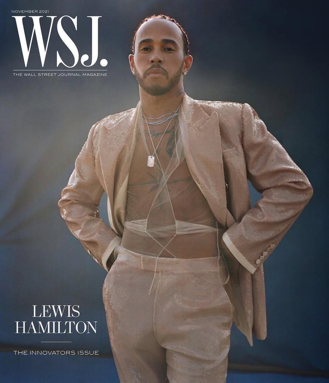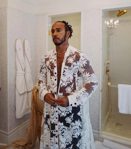 Тогда в жизнь Хэмилтона пришла по-настоящему высокая мода: образы стали усложняться во всем — от принтов до силуэтов и фактур, а еще к ним добавились столь необходимые аксессуары и ювелирные украшения. Более того, именно Роуч привил гонщику ценность самых экстравагантных, а порой и «женственных» вещей, которые, на удивление, лишь подчеркивали его мужественность. Например, в их сотрудничестве Льюис стал носить кружево. В платье-рубашке из этой ткани он отметился в своих соцсетях, а после вышел на Met Gala 2021 в костюме с длинным белым шлейфом. Лоу также убедил Хэмилтона позировать в прозрачном шифоновом топе для The Wall Street Journal — одной из самых эффектных фотосессий в карьере спортсмена.