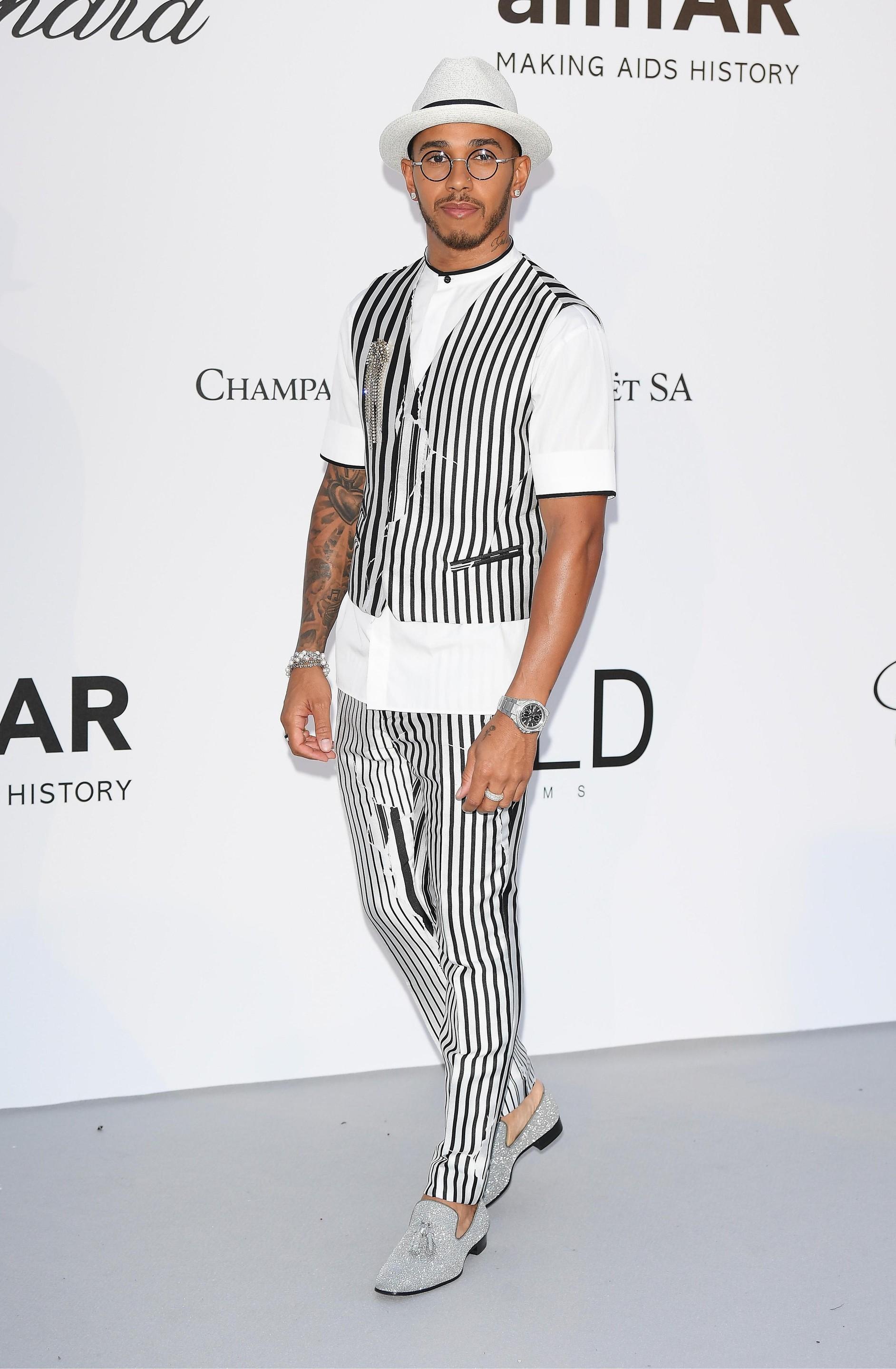 Тогда уже начала складываться его фирменная манера одеваться — Хэмилтон стал носить нетривиальные и яркие брючные костюмы на красных дорожках, а в повседневной жизни сочетать привычные спортивные модели с классикой, яркими принтами и сложными тканями. Например, в 2017-м он вышел на The Fashion Awards в двойке Versace из алой английской клетки, а через год появился на гала-вечере amFAR в полосатых жилете и брюках, дополненных сверкающими серебристыми лоферами. Тогда его стиль еще был далек от совершенства, но кое-что было совершенно очевидно — спортсмен абсолютно не боится экспериментировать.