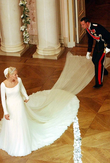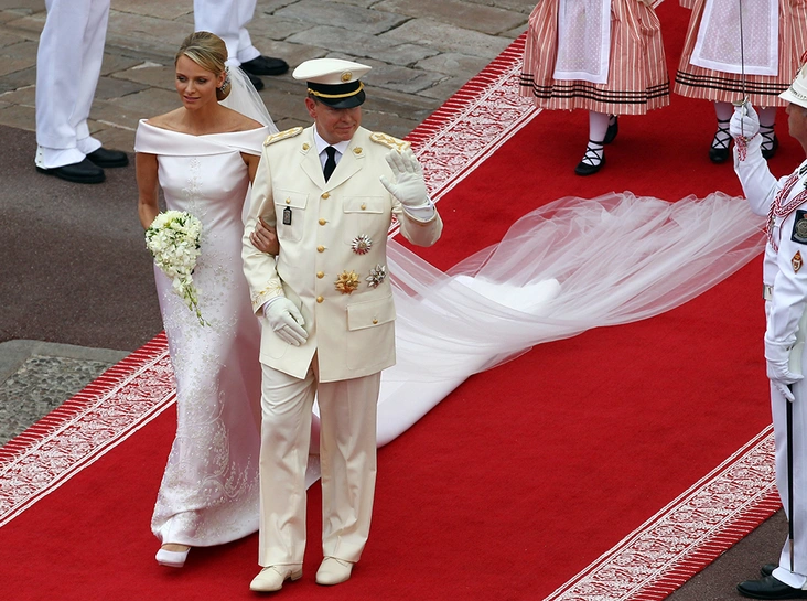 За 18 лет до того, как Меган стала частью Британской королевской семьи, в январе 2000 года состоялась свадьба принца Максимилиана Лихтенштейнского и простолюдинки Анжелы Браун. Анжела стала первой темнокожей женщиной, вышедшей замуж за представителя европейской монархии. И если даже сейчас союз Меган и Гарри кажется чем-то экстраординарным, стоит ли говорить о том, как был воспринят тот мезальянс. Разумеется, Меган знала эту историю, как знала о ней и дизайнер ее подвенечного наряда. И если сравнить фотографии двух венчаний, то становится совершенно очевидно, что платье, которое мы увидели 19 мая — это реминисценция наряда первой темнокожей принцессы Анжелы.