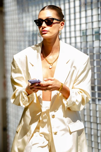 Сорочка на голое тело или жакет, надетый без бра или топа — такие соблазнительные аутфиты тоже давно не редкость.Тем более в жаркое время года, когда количество слоев одежды в образе должно быть минимизировано. В таких случаях лучше позаботиться о том, чтобы предмет гардероба плотно прилегал к телу. Например, можно зафиксировать жакет и рубашку специальным двусторонним скотчем или тейпом. Такой, кстати, производит Ким Кардашьян в рамках бренда Skims. Звезда не раз признавалась, что тейп просто спасает ей жизнь, ведь она любит модные эксперименты.