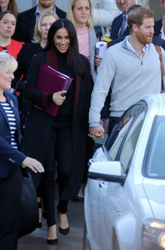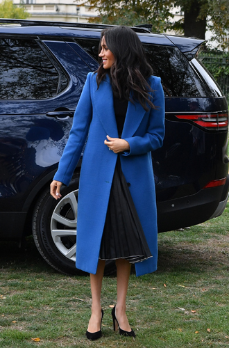 Одежда стала для Мег хорошим способом скрывать интересное положение. В частности, ее спасали пальто до колена: их ношение осенью да в Англии не вызывает никаких вопросов. Хорошим подспорьем стали любимые лодочки ─ туфли на шпильках удачно акцентировали внимание на открытых ногах и тонких лодыжках, отвлекая взгляд от талии. Еще один нюанс ─ драпировка, которая могла удачно замаскировать объем в районе живота или в прямом смысле принять удар на себя (мы еще помним, что Меган пеняли за синее драпированное платье Jason Wu, в котором она казалась «немножко беременной», и за топ с баской от Oscar de la Renta с таким же эффектом).