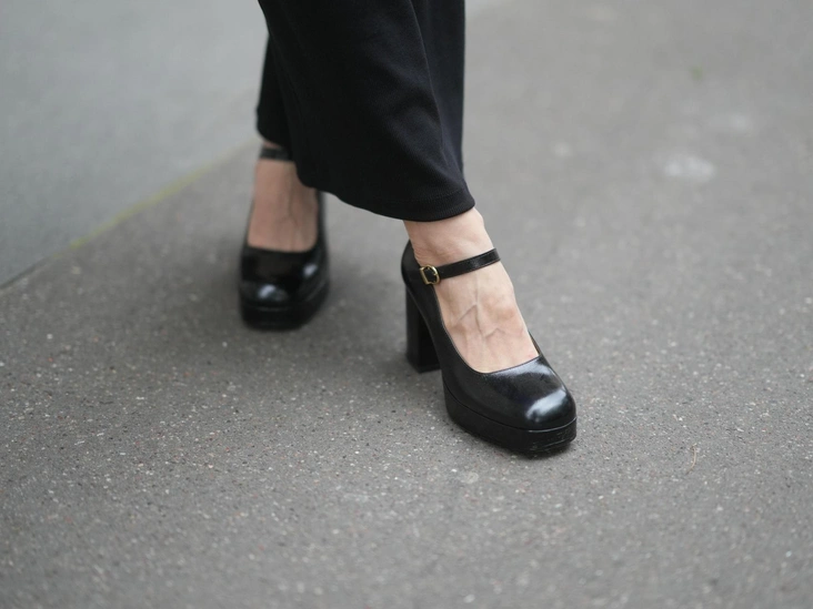 Подобную модель можно увидеть на показах Gucci. Носить с яркими пальто и узорчатыми колготками (читайте также: Какие колготки будут в моде весной 2023 (и как их правильно носить)).