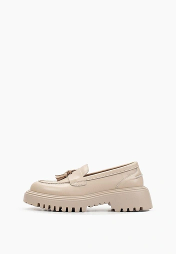 Лоферы на массивном каблуке в гармоничном сочетании с молочным цветом.