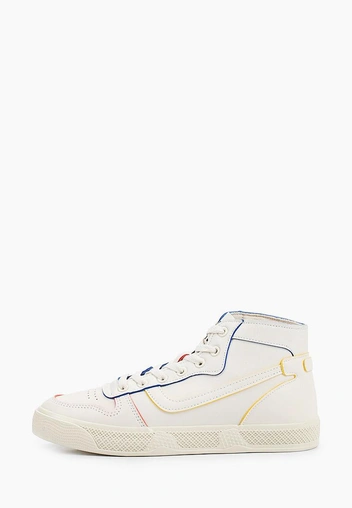 Еще одна высокая пара кед, но уже в более «теплом» белом и с цветными выточками, которые дают возможность использовать колор блокинг в образах.