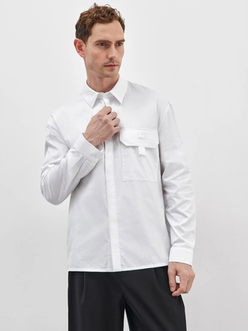 Еще один интересный игрок с большим диапазоном мужских рубашек — WHO / AM. Даже самая классическая модель в белом цвете здесь заиграет новыми красками, например, благодаря удлиненному асимметричному воротнику или разрезам, которые сразу же превращают привычный силуэт в оригинальную модель. Состав тоже радует: стопроцентный органический хлопок, лен, eco-friendly производство.