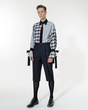 Питерский бренд, созданный Леонидом Алексеевым, — настоящая находка для любителей стильных моделей в выдержанных тонах и с необычными акцентами. Найти можно однотонные рубашки с карманами, вставками-завязками и разрезами или модели с комбинированным геометрическим узором-клеткой (здесь тоже не обошлось без акцентов-завязок). Модели идеально подойдут как для делового мероприятия, так и для вечеринки.