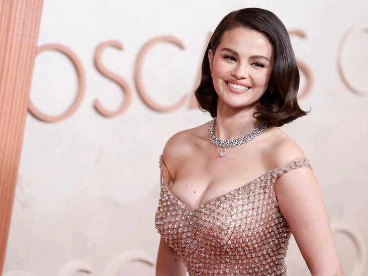 На «Оскар-2025» Селену одевали Ralph Lauren. Специально для певицы сшили полупрозрачное платье-бюстье, инкрустированное тысячами кристаллов. Образ дополнили не менее роскошные ювелирные украшения.
