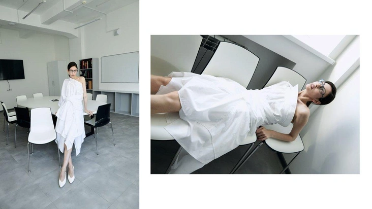 Бренд предложил студентам программы «Мода» Школы дизайна НИУ ВШЭ создать из сэмплов самой первой коллекции несколько готовых образов, через которые они показали свое понимание устойчивой моды в современном мире. В ход пошли «вареный» деним, базовые рубашки и футболки, нарядные платья и классические пиджаки.