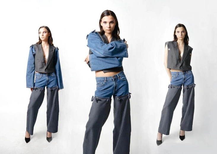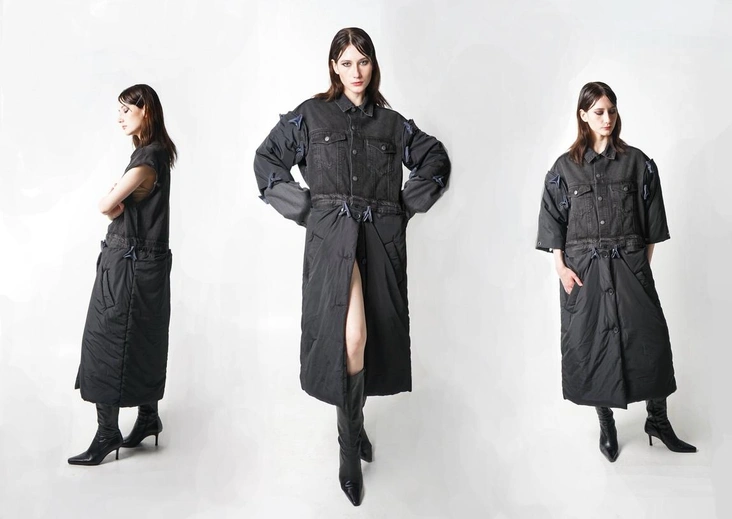 Анастасия Колесникова в капсуле Modularity последовала тренду и представила плащ, который легко превратить в куртку, шорты-брюки и жилет, превращающийся в пиджак. «Концепция проекта заключается в том, чтобы не производить лишнюю одежду, а придерживаться принципа модульности. Такой подход способствует экономии ресурсов и снижению влияния текстильной индустрии на окружающую среду».