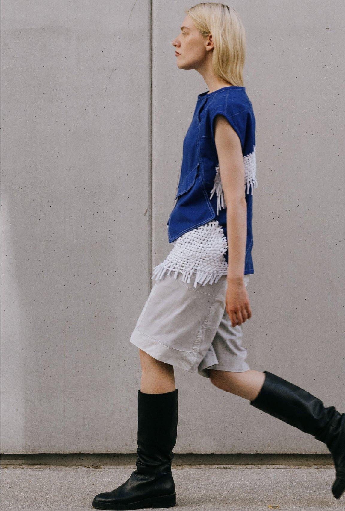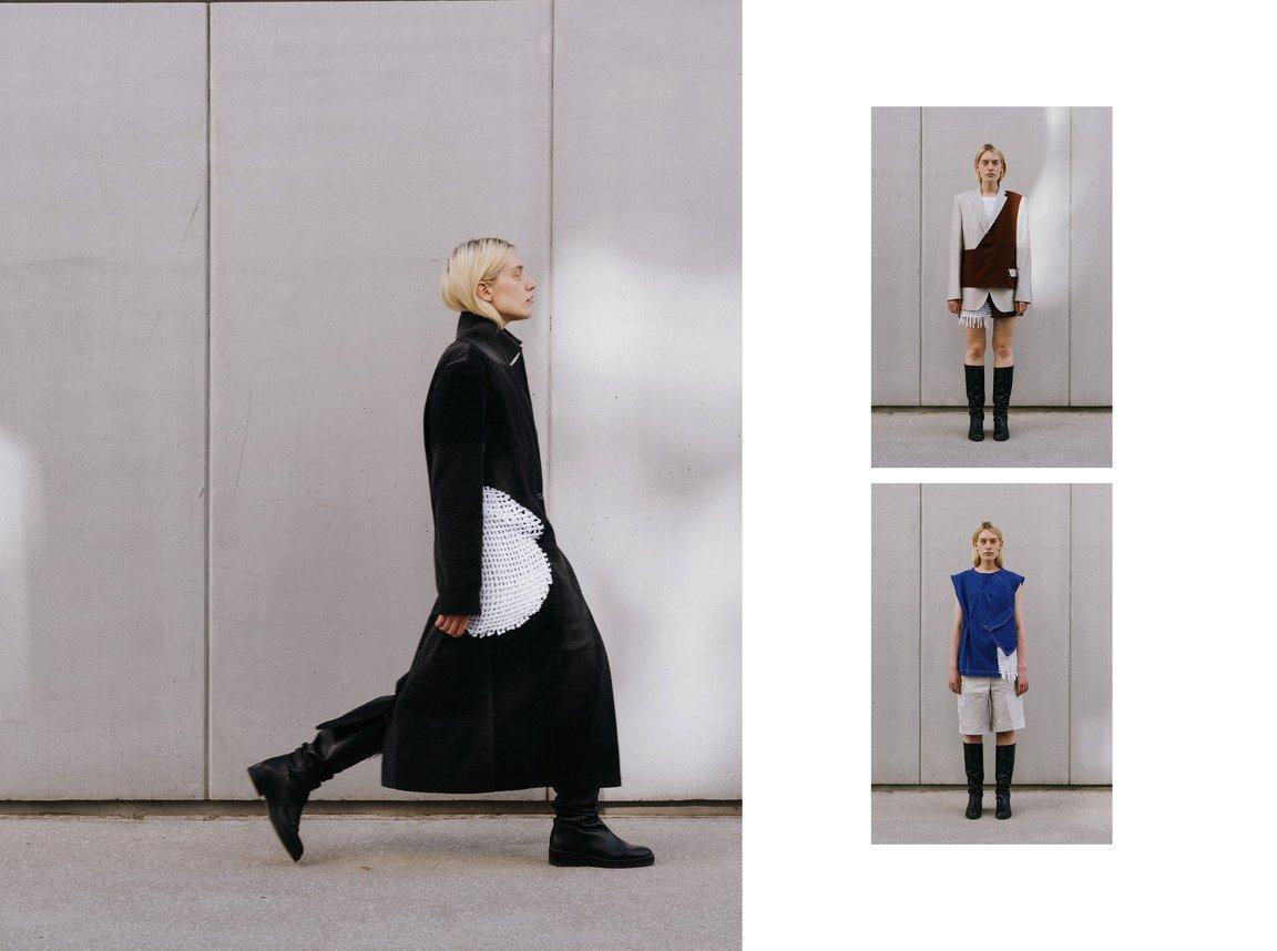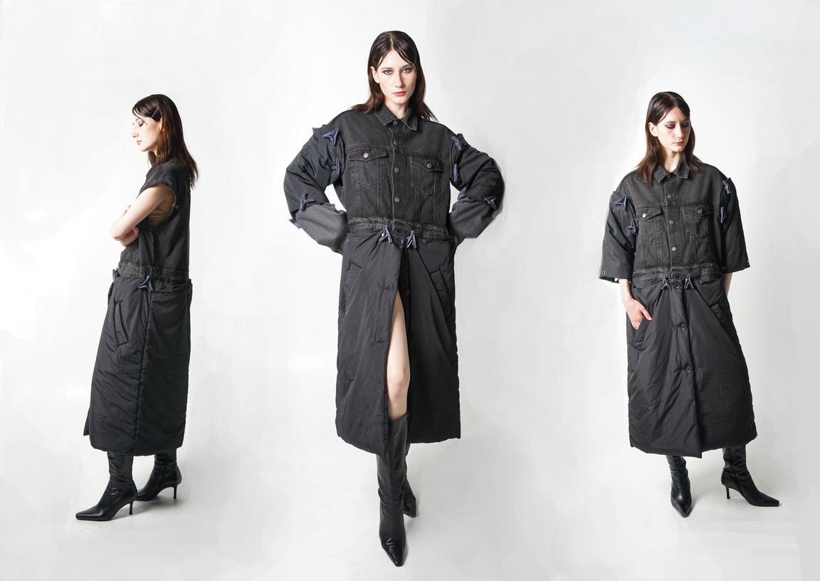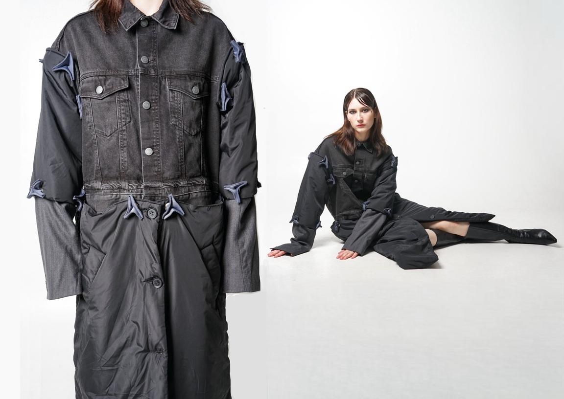 Анастасия Колесникова в капсуле Modularity последовала тренду и представила плащ, который легко превратить в куртку, шорты-брюки и жилет, превращающийся в пиджак. «Концепция проекта заключается в том, чтобы не производить лишнюю одежду, а придерживаться принципа модульности. Такой подход способствует экономии ресурсов и снижению влияния текстильной индустрии на окружающую среду».