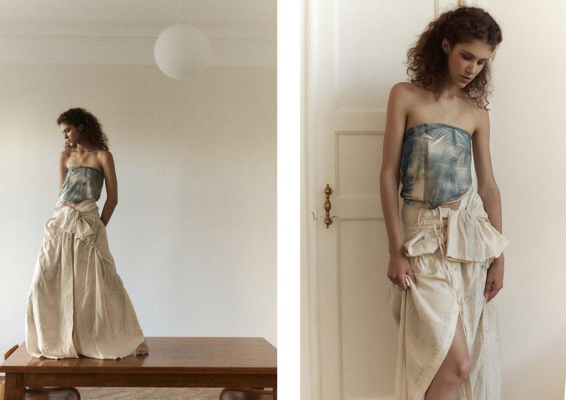 Бренд предложил студентам программы «Мода» Школы дизайна НИУ ВШЭ создать из сэмплов самой первой коллекции несколько готовых образов, через которые они показали свое понимание устойчивой моды в современном мире. В ход пошли «вареный» деним, базовые рубашки и футболки, нарядные платья и классические пиджаки.