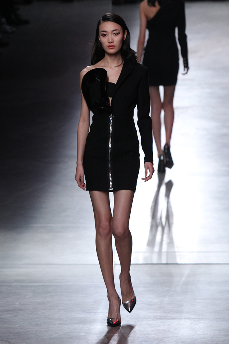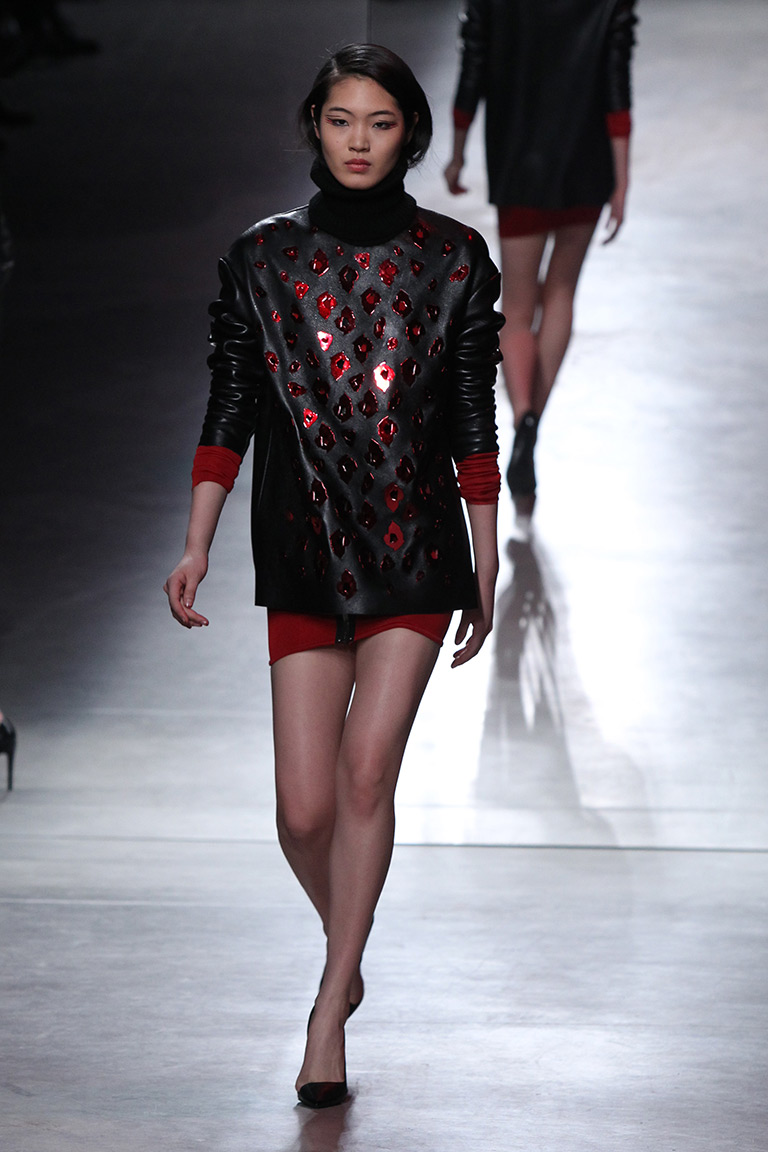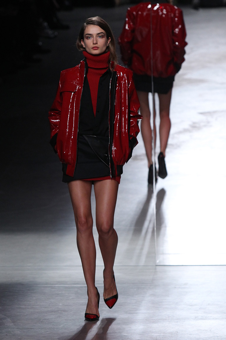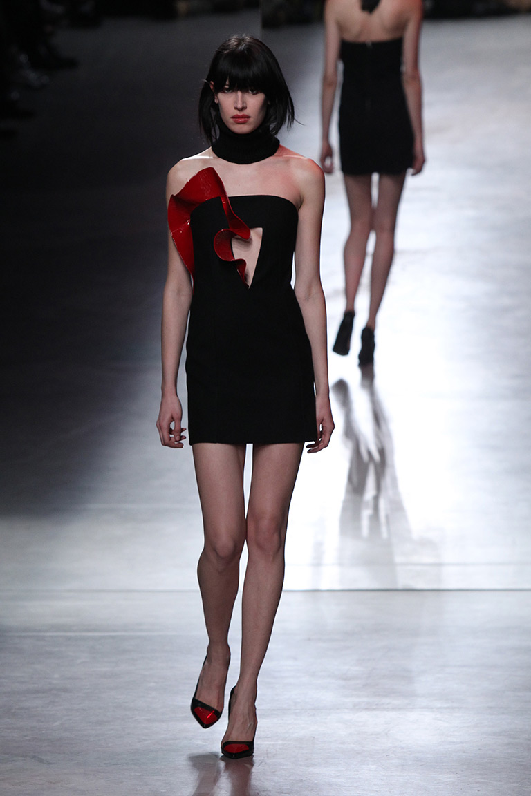 Бельгийский дизайнер Энтони Ваккарелло не отходит от привычных ему тенденций и создает коллекцию в стиле девичьего рока: черные кожаные короткие платья, жакеты и юбки. В этот раз добавилась новая деталь — красный цвет. Он присутствует в качестве основного для свитера и кожаной куртки, а также именно в него окрашены части ремней, подкладки жакетов, вышитые элементы на одежде и декоративные детали платьев. Из нового — асимметрия и оборки, которые придают его нарядам женственность. Энтони Ваккарелло, ставший недавно дизайнером Versus Versace, почти игнорирует пальто в осенней коллекции, предлагая девушкам носить укороченные кожаные куртки с мехом на внутренней стороне. Отсылкой к пальто можно считать появившийся на подиуме в начале показа длинный расстегнутый черный жакет, открывающий юбку с вырезом от бедра.