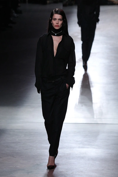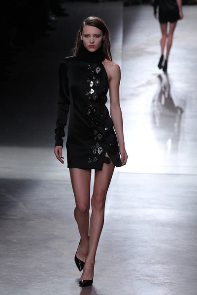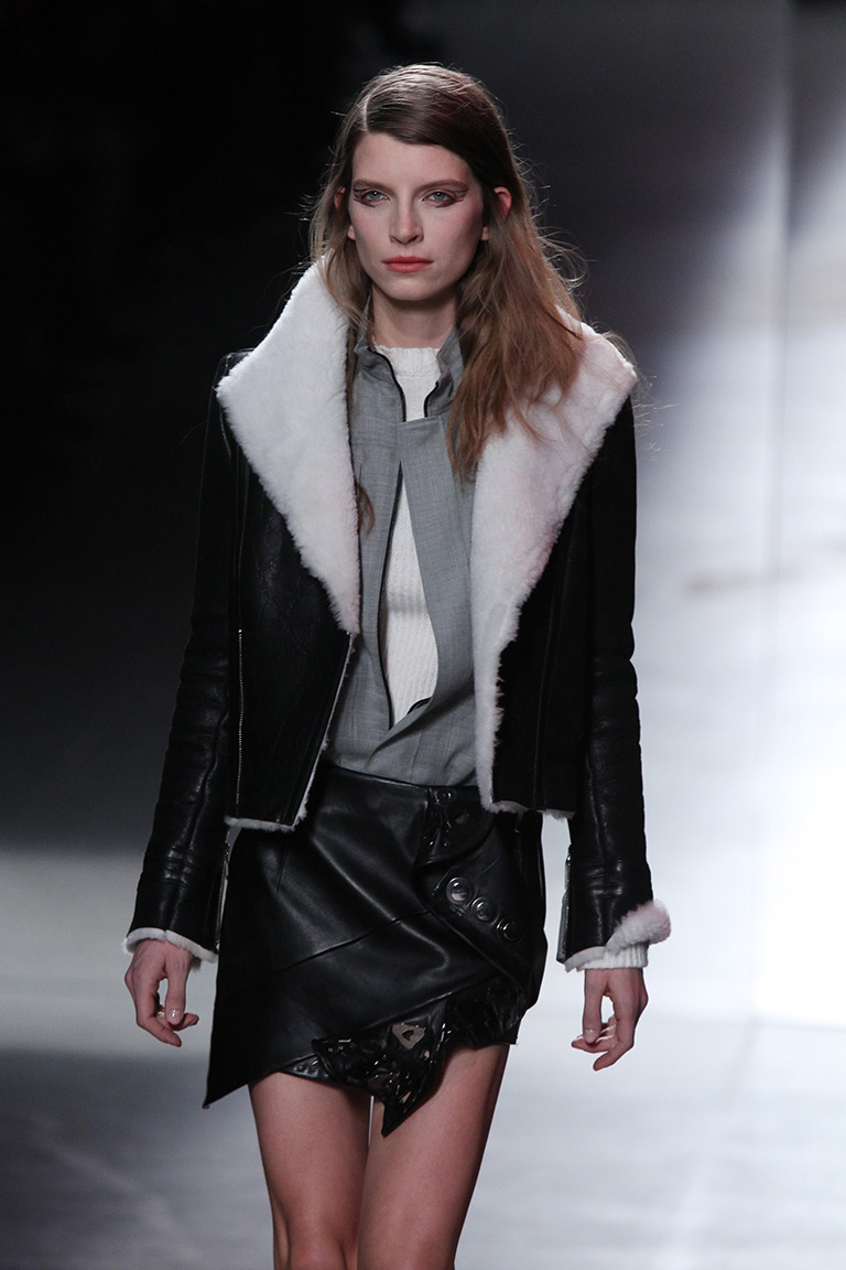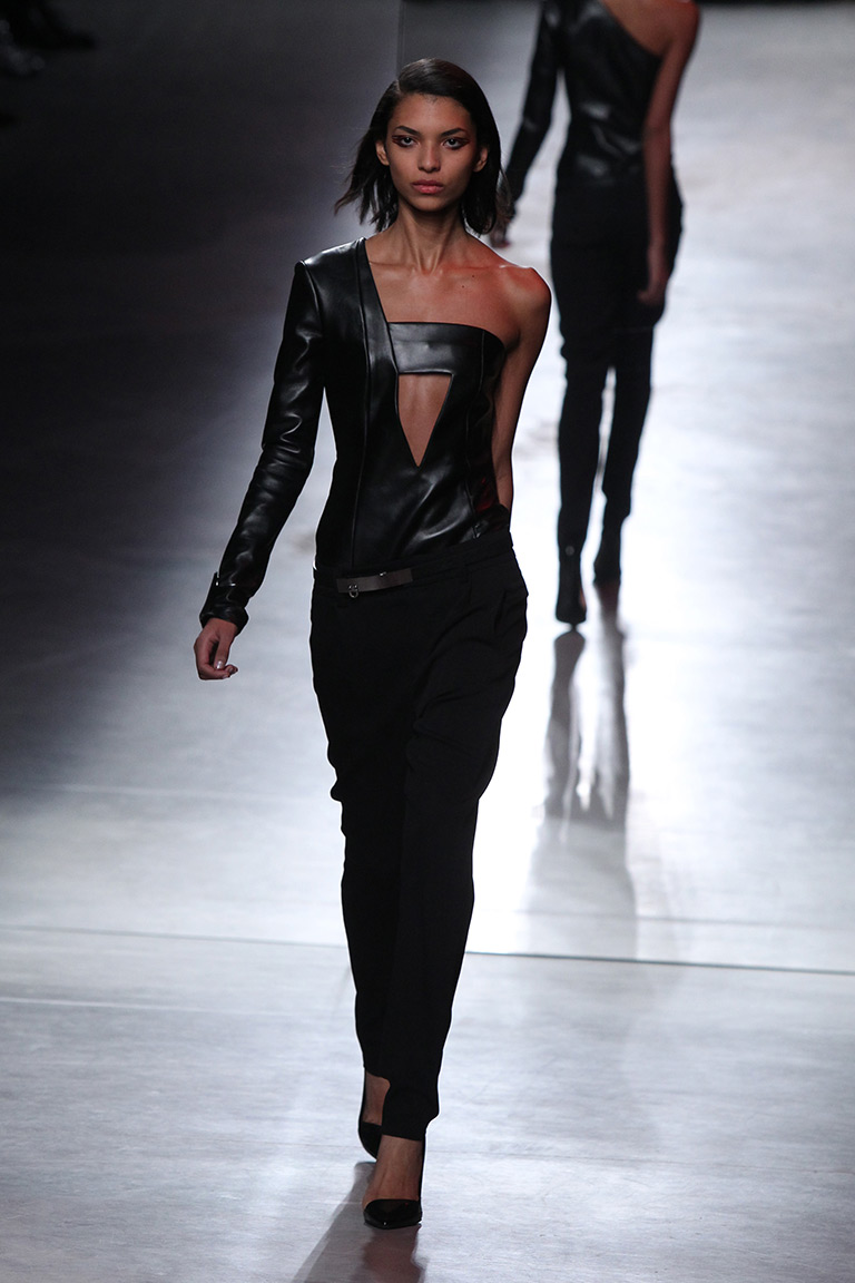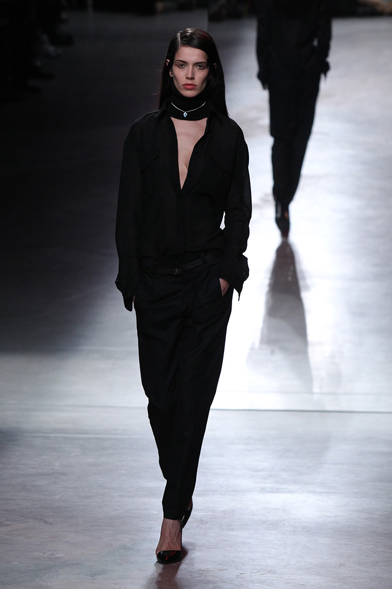 Бельгийский дизайнер Энтони Ваккарелло не отходит от привычных ему тенденций и создает коллекцию в стиле девичьего рока: черные кожаные короткие платья, жакеты и юбки. В этот раз добавилась новая деталь — красный цвет. Он присутствует в качестве основного для свитера и кожаной куртки, а также именно в него окрашены части ремней, подкладки жакетов, вышитые элементы на одежде и декоративные детали платьев. Из нового — асимметрия и оборки, которые придают его нарядам женственность. Энтони Ваккарелло, ставший недавно дизайнером Versus Versace, почти игнорирует пальто в осенней коллекции, предлагая девушкам носить укороченные кожаные куртки с мехом на внутренней стороне. Отсылкой к пальто можно считать появившийся на подиуме в начале показа длинный расстегнутый черный жакет, открывающий юбку с вырезом от бедра.