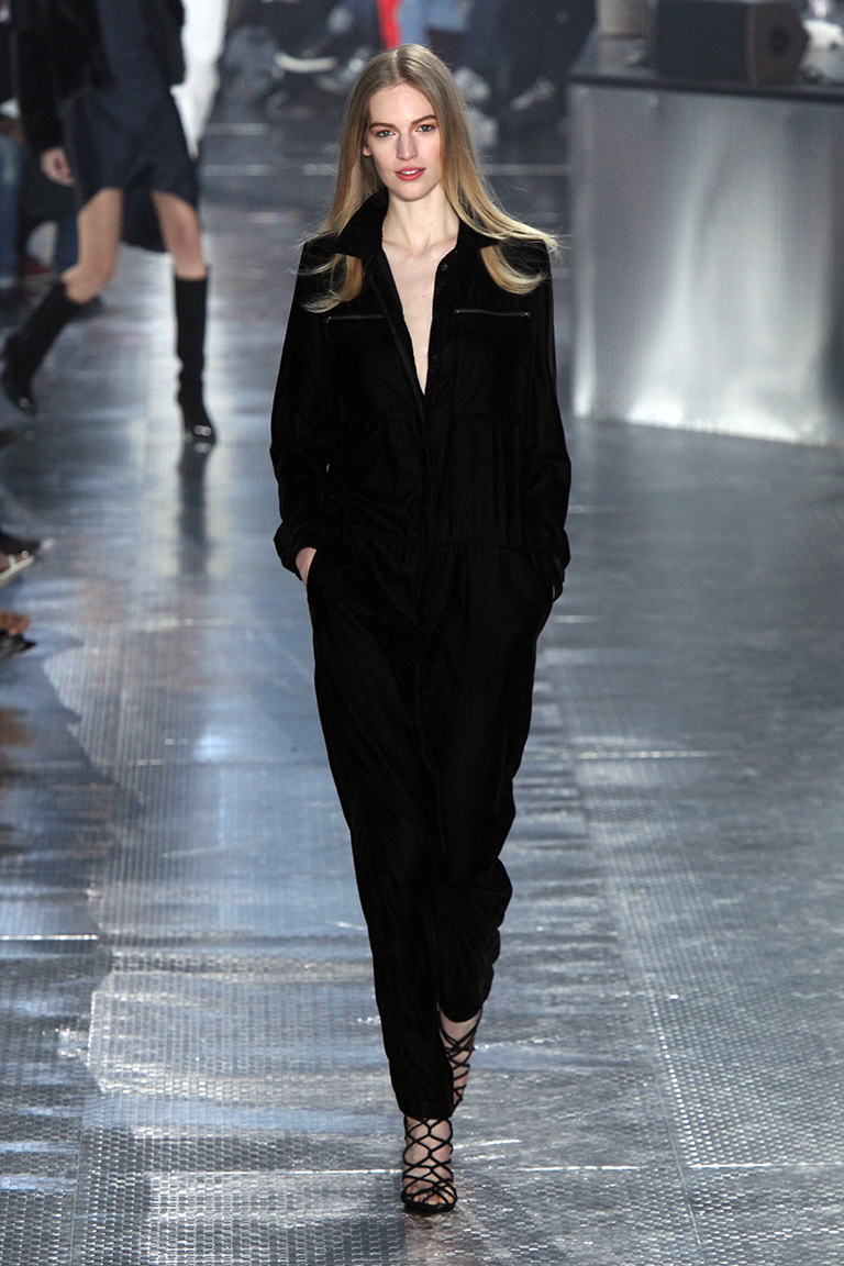 Коллекция отдает дань трендам 90-х – скользящим шелковым облегающим платьям, андрогинности и авиаторским курткам.