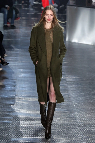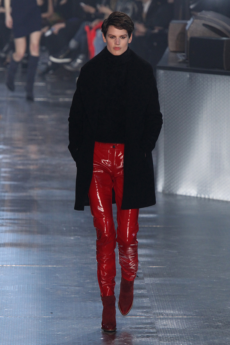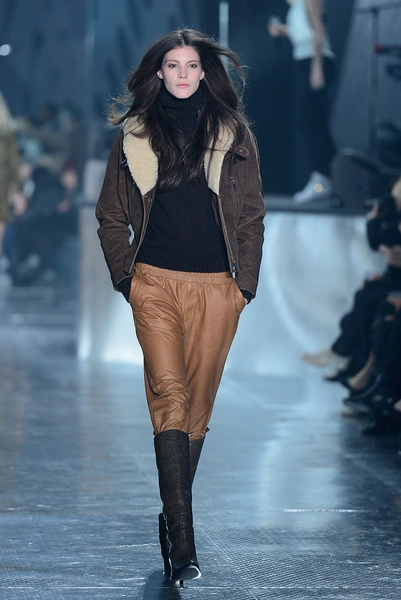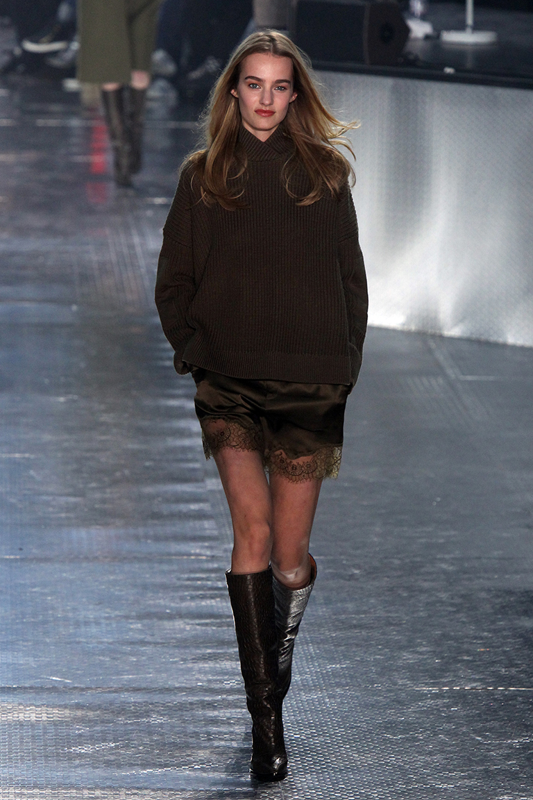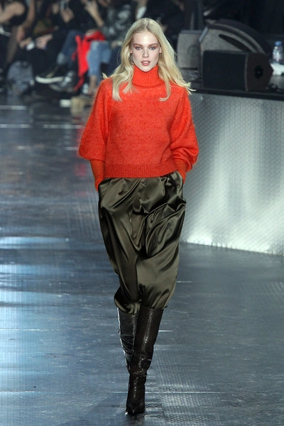 На показе H&M Studio продемонстрировали «мужские» костюмы свободного кроя в сочетании с римскими сандалиями. Атласные, похожие на белье платья с асимметричным подолом без декоративных элементов – они едва ли не больше всего напоминали о 90-х. Даже модель, которая вышла на подиум в голубом платье, была похожа на легенду того времени Синди Кроуфорд (Cindy Crawford). Вязаные свитера песочного, зеленого и других оттенков хаки H&M сочетает с кружевными атласными шортами того же цвета. Вечерние платья и костюмы выполнены в темно-синих и серых оттенках с большим количеством пайеток, а верхняя одежда представлена объемными меховыми полушубками, очень длинными пальто и двубортными тренчами цвета хаки. Отдельно стоит отметить вернувшиеся на подиум авиаторские куртки с мехом внутри, как на показе Anthony Vaccarello. Одно из ключевых цветовых сочетаний шоу – кораллово-красный с болотно-зеленым.