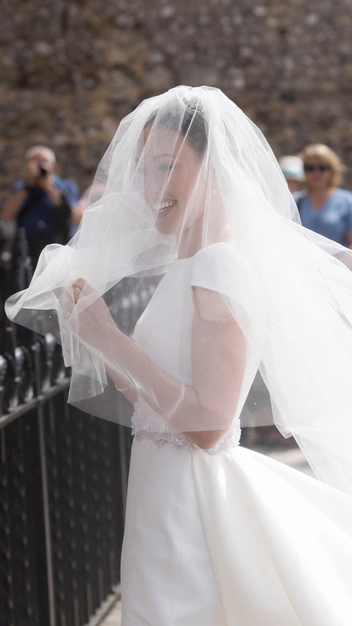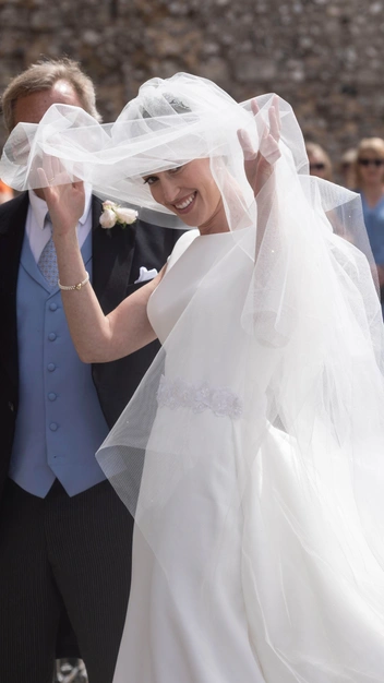 Леди Татьяна Маунтбеттен, дочь маркиза Милфорд Хейвена, обручилась со своим избранником в одном из самых величественных готических зданий — Винчестерском соборе. Родственница покойной королевы Елизаветы II вышла замуж в потрясающем лаконичном платье, украшенным поясом из камней (читайте также: 5 королевских свадеб, которые никто не одобрял). Верх наряда напоминал классическую облегающего футболку, из-за чего образ хочется рассматривать снова и снова. Выходила к жениху, предпринимателю Александру Дрю, она с сетчатой фатой, сшитой в минималистичном стиле. Нельзя не сказать и о бриллиантовой тиаре «Стратморские розы» с цветочным узором, которую надевают принцессы и королевы с XIX века.