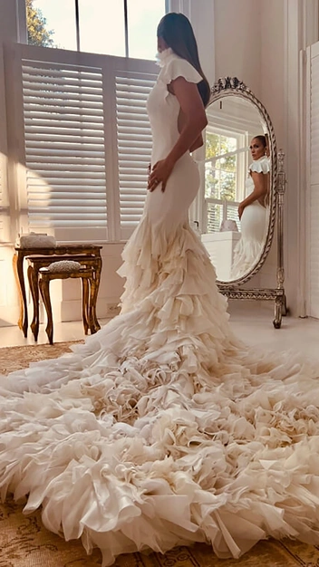 Влюбляться в бывших вновь можно и нужно, это нам доказала романтическая история воссоединения Дженнифер Лопес и Бена Аффлека (читайте также: Американские горки: история любви Бена Аффлека и Дженнифер Лопес — от помолвки и разрыва до воссоединения спустя годы). В 2003 году жених отменил свадьбу, не справившись с популярностью своей возлюбленной. Но в этот раз все было по-другому. Певица сменила три платья, и все они — творчество Ralph Lauren. Одно из них с невероятным многослойным подолом, другое украшено жемчужными бусами, а третье выполнено в минималистичном стиле с разрезом на груди.