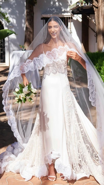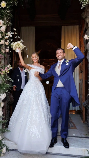 Топ-модель вышла замуж за кинематографиста Виктора Бастидаса в воздушном платье Lanvin. Отношения пары — очень трепетная история: молодые люди признались друг другу в чувствах в 2019 году, но виделись из-за работы редко, зато какими были их спонтанные свидания в разных городах по всему миру! Виктор, следуя традициям, попросил руки и сердца у отца Норы, а затем на ужине сделал предложение. От красоты платья невесты замирает сердце: открытая спина, тонкие бретели и подол, напоминающий морские волны.